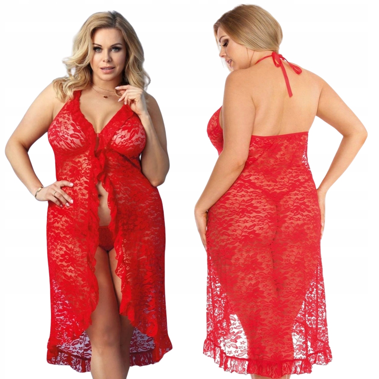 Чувственная и сексуальная длинная красная рубашка + красные кружевные стринги