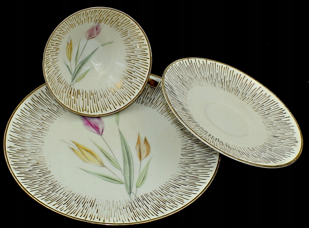 LOVELY СТАРЫЙ НАБОР ДЛЯ ЗАВТРАКА - позолота - цветы