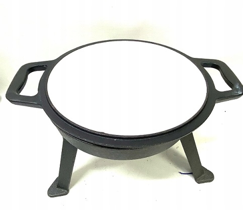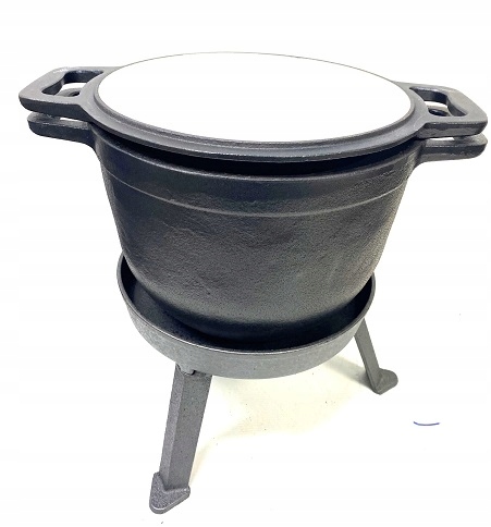 - в комплект входит крышка, ручка-монтаж и 3 ножки, прикручивающиеся к казану.