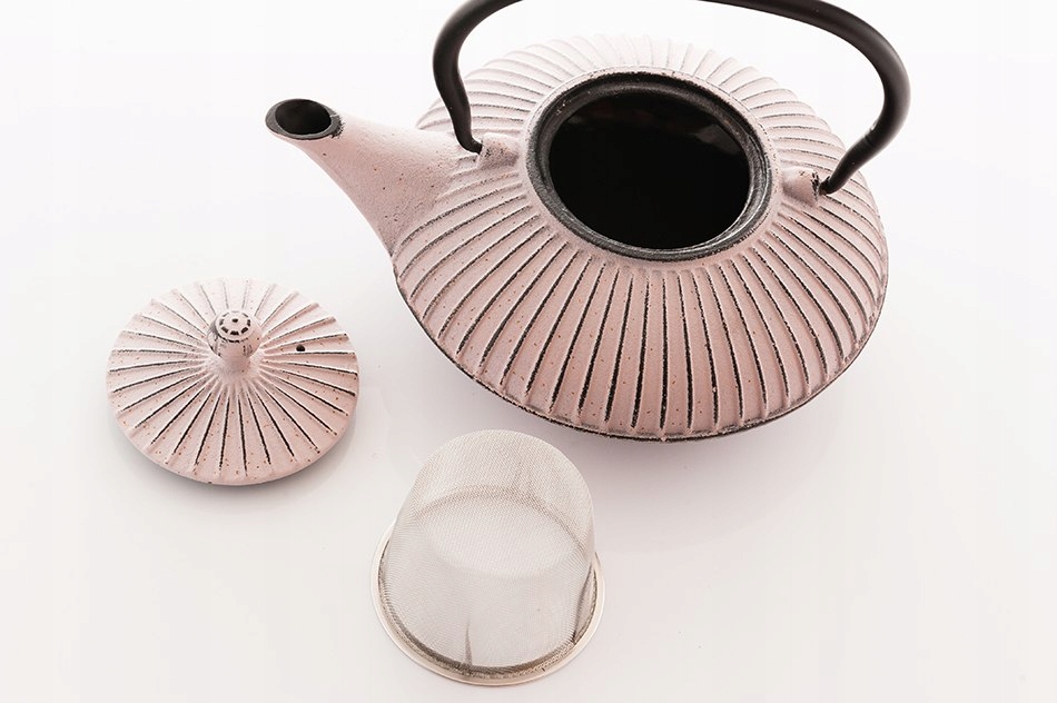 Оригинальный чугунный кувшин емкостью 780 мл с металлическим ситечком. Цвета - светло-пудровый розовый. Оригинальный продукт - разрешен для контакта с пищевыми продуктами.