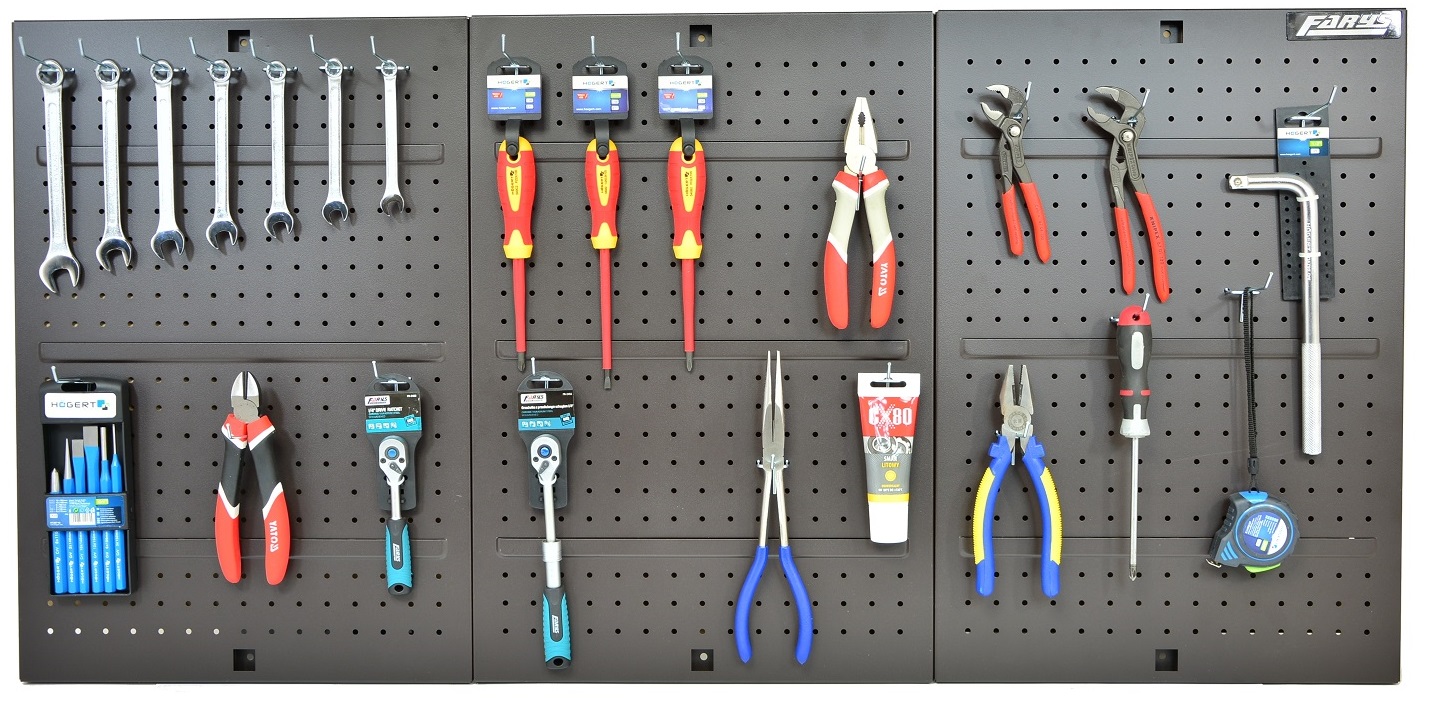 Оборудование состоит из двадцати пяти крючков, поэтому вы можете разместить все свои инструменты в одном, легкодоступном месте. Больше не нужно искать пропавший молоток, плоскогубцы или ключи. Стенка для инструментов с крючками решит ваши проблемы и внесет гармонию и порядок. Вы сами увидите, что выполнять всю работу станет намного приятнее и быстрее, и вы избавитесь от лишнего стресса.