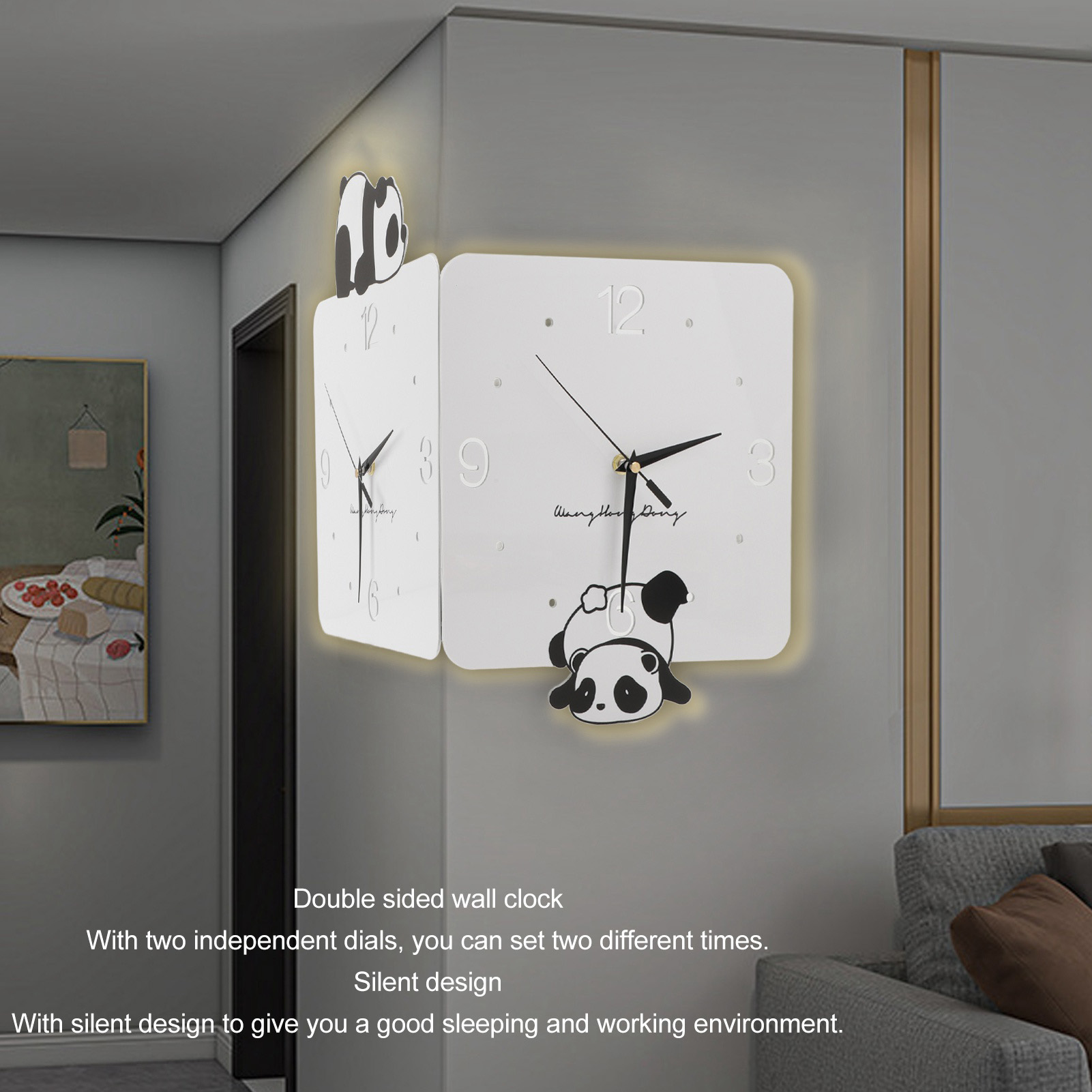 1. Двойные настенные часы: настенные часы имеют две независимые ручки, которые можно установить два раза. Это можно увидеть со многих направлений, и его очень легко читать.