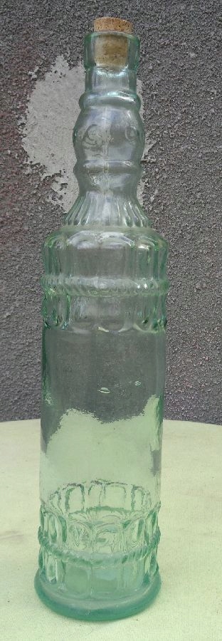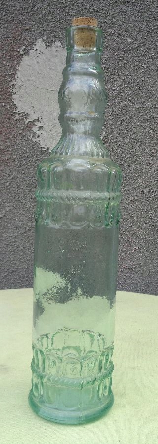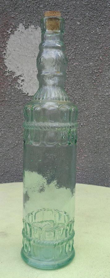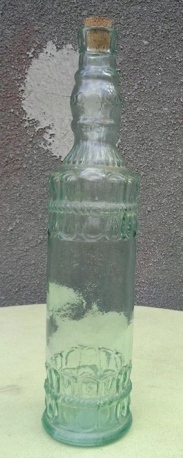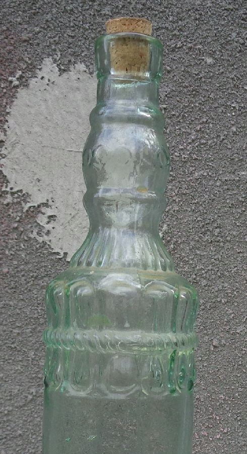 Интересная, интересная бутылка 1980-х годов. Экспонат выполнен из стекла зеленого цвета. Выставка внизу была интересно и тщательно оформлена. Центральная часть выполнена из гладкого стекла. Бутылка вверху тоже аккуратно и интересно оформлена. У бутылки интересное горлышко. Экспонат имеет оригинальную закрывающуюся пробку. Стекло без повреждений. Всем рекомендую.