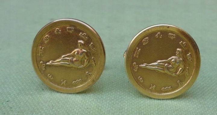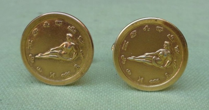 Интересные, интересные, роскошные мужские запонки 1960-х годов. Экспонаты изготовлены из позолоченного металла. Запонки имеют красиво оформленную круглую корзинку. Корзина в центральной части украшена красиво выполненным знаком зодиака, окруженным красиво выполненным орнаментом. Всем рекомендую.
