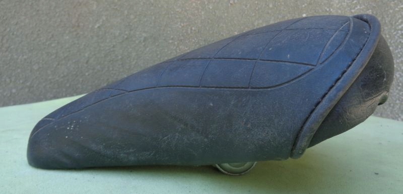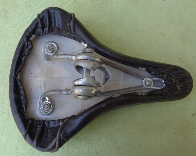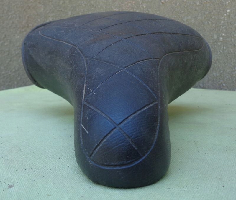 Интересное, интересное велосипедное седло 1970-х годов. Обивка сидений выполнена из пластика, украшенного интересным шахматным узором. Внизу имеются стальные крепления. Внутренняя рамка изготовлена из пластика. Всем рекомендую этот интересный экспонат.