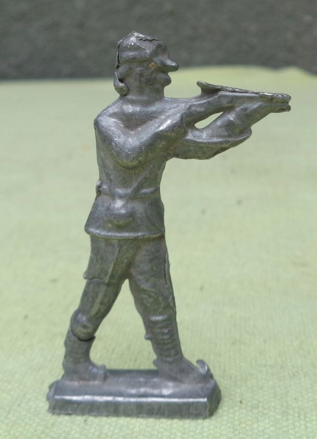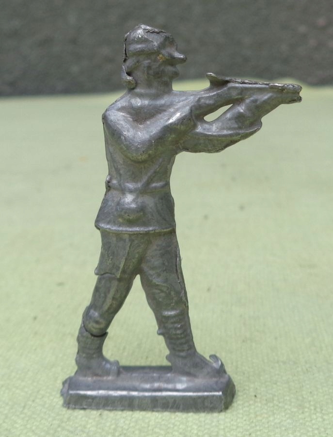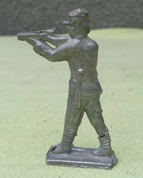 Интересный, интересный, коллекционный солдатик 1920-х годов. Экспонат был изготовлен из свинца с большой точностью и аккуратностью. Солдат целится из пистолета. Основание экспоната прямоугольное. Всем рекомендую.