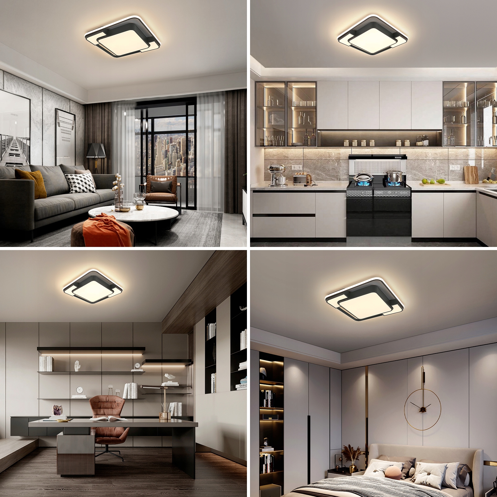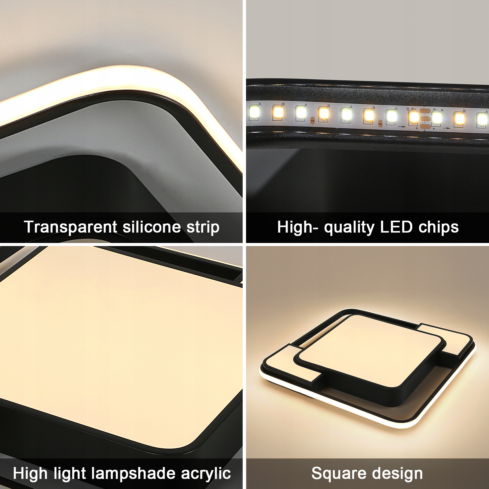 ПОТОЛОЧНЫЙ СВЕТИЛЬНИК С РЕГУЛИРУЕМОЙ РЕГУЛИРОВКОЙ, ПРОСТОЙ СВЕТОДИОДНЫЙ СВЕТИЛЬНИК, ЧЕРНЫЙ КВАДРАТ, ПУЛЬТ ДИСТАНЦИОННОГО УПРАВЛЕНИЯ ДЛЯ ГОСТИНОЙ