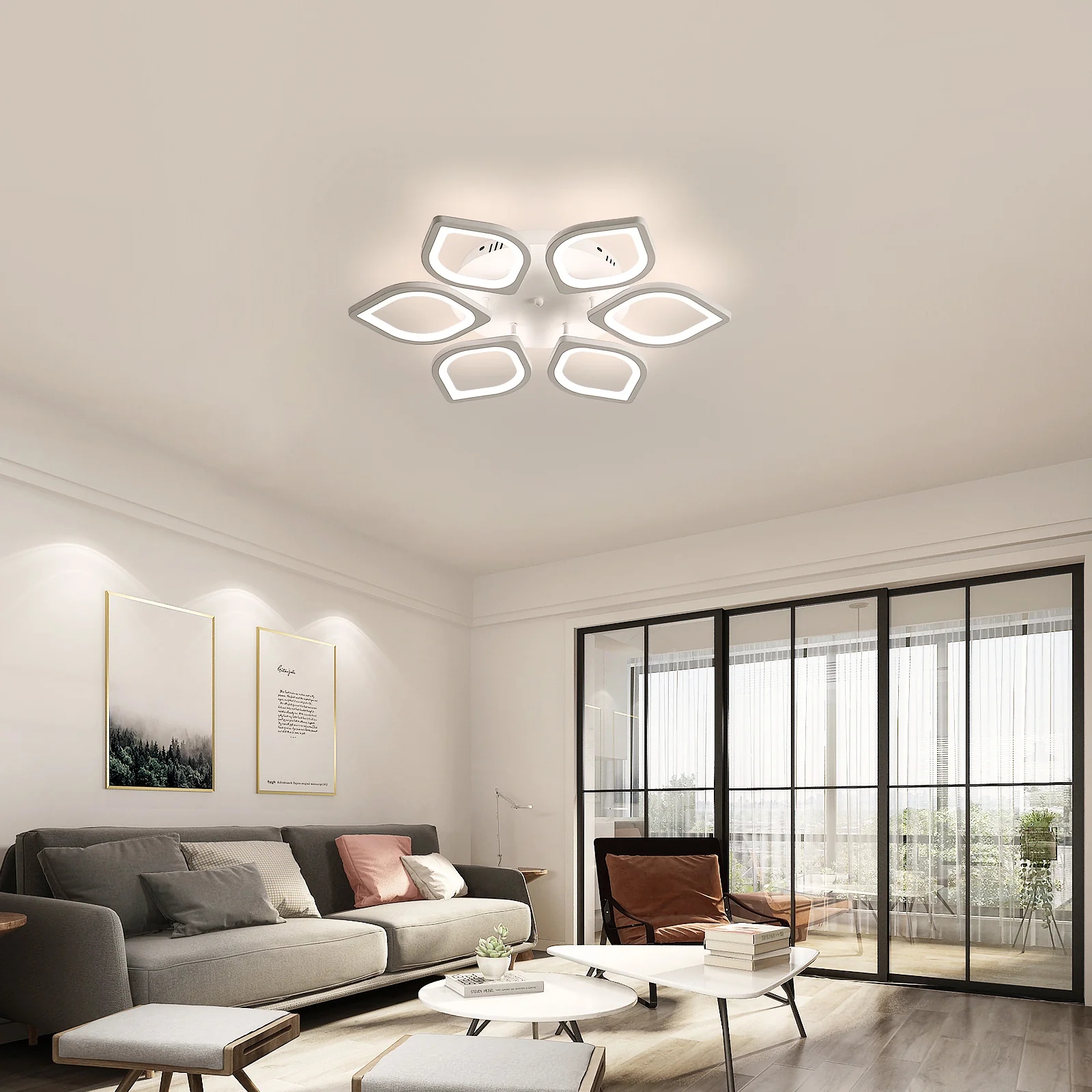 Потолочный светодиодный светильник, состоящий из 6 патронов в виде лепестков и держателей. Высококачественный металлический каркас и акриловый абажур, излучающие, контролирующие, обеспечивающие высокую температуру и хорошее пропускание света. Более беззаботно.