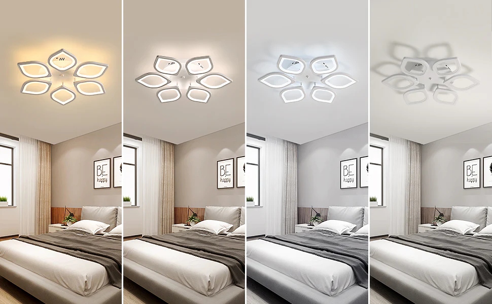 Потолочный светодиодный светильник оснащен пультом дистанционного управления который позволяет свободно использовать пределы температуры и цвета в диапазоне от 3000 К до 6500 К (теплый белый/холодный белый/нейтральный), для адаптации к потребностям различных сцен. Встроенная светодиодная подсветка защищает глаза от бликов традиционного освещения, имеется источник света. Лампа имеет память и температура другого освещения запоминается в телефоне.