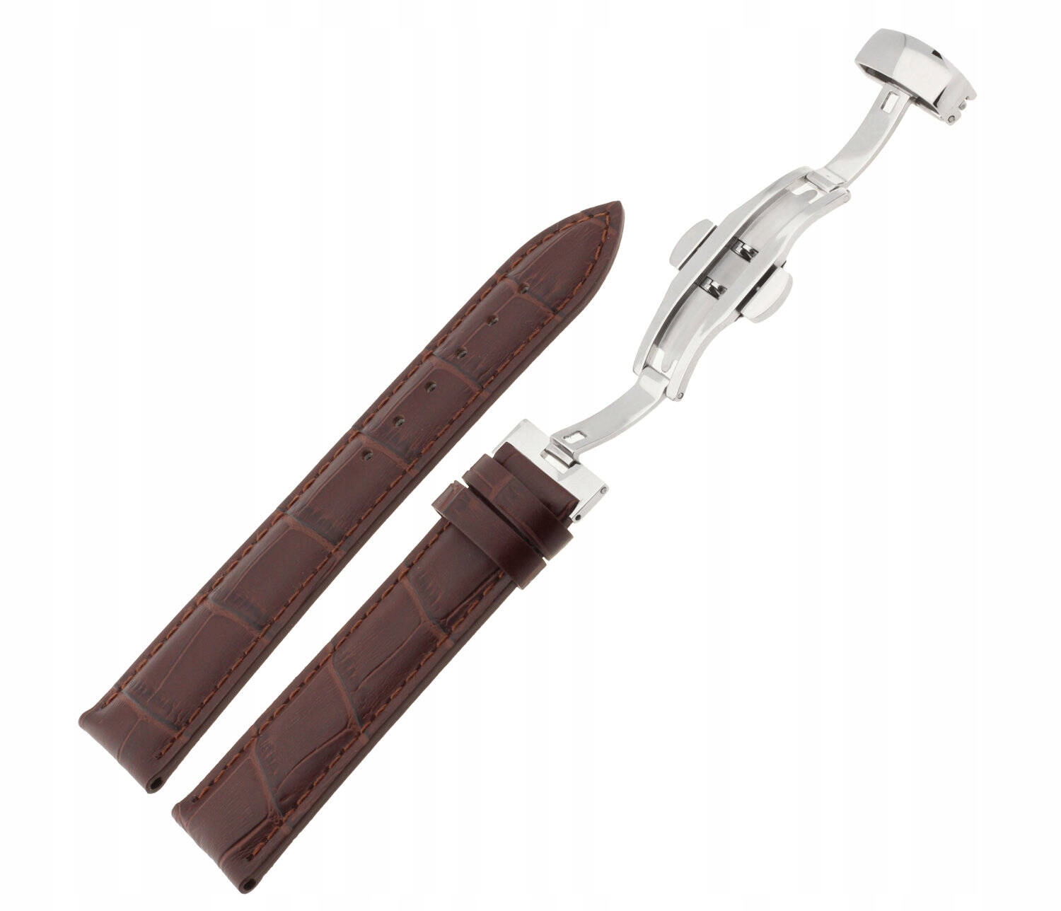 CIEMNOBRĄZOWY SKÓRZANY PASEK DO ZEGARKA 20 mm JVD R42402 ZAPIĘCIE MOTYLKOWE