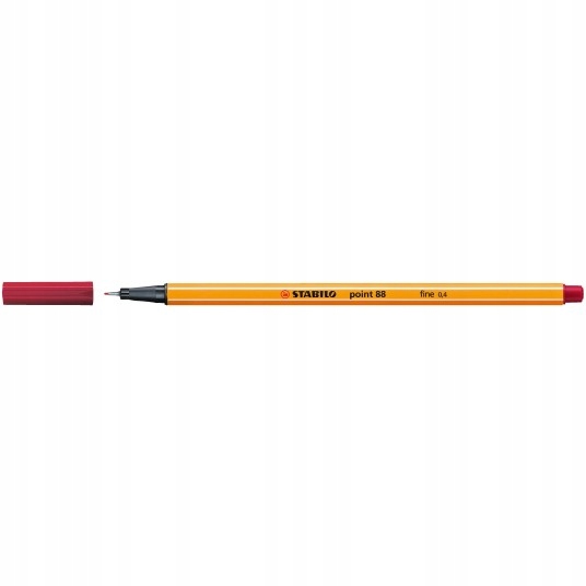 STABILO point 88 — самый популярный лайнер в Европе. Идеально подходит для письма, рисования, выделения, раскрашивания и работы с линейкой. Он доступен в 47 цветах, что делает его пригодным для создания ассоциативных карт и красочных заметок, облегчающих запоминание. Прочный наконечник в металлическом каркасе устойчив к поломке и расслоению, что гарантирует высокий комфорт письма до полного израсходования чернил. К дополнительным преимуществам можно отнести устойчивость к высыханию (если оставить без колпачка, он долго не высыхает) и вентилируемый колпачок, защищающий от удушья в случае внезапного проглатывания. Толщина линии письма 0,4 мм. Цвет: темно-красный.