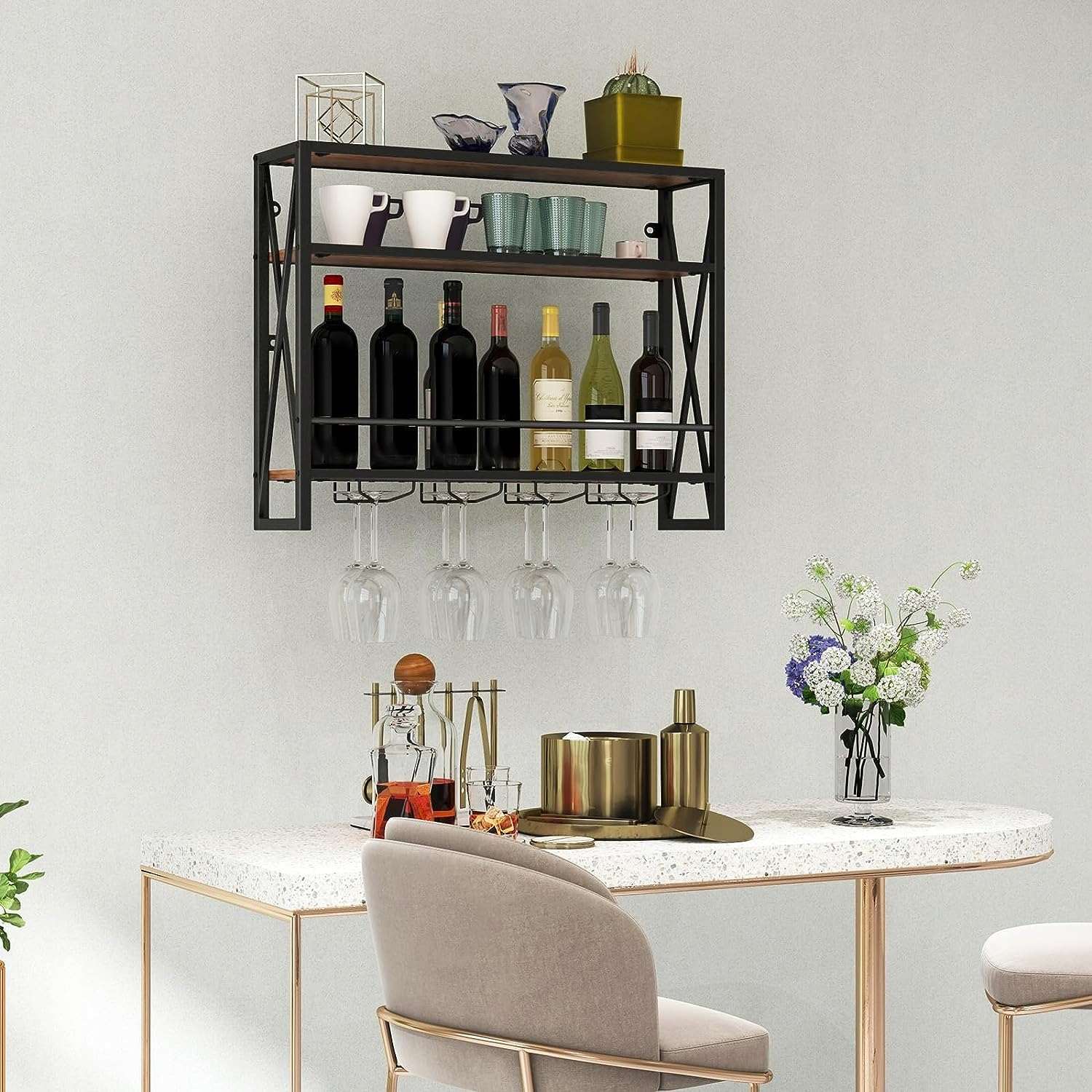 Компактная винная полка. Настенные винные стойки позволяют максимально увеличить вертикальное пространство за счет установки полки для бутылок на стену, обеспечивая больше места для использования в помещении.