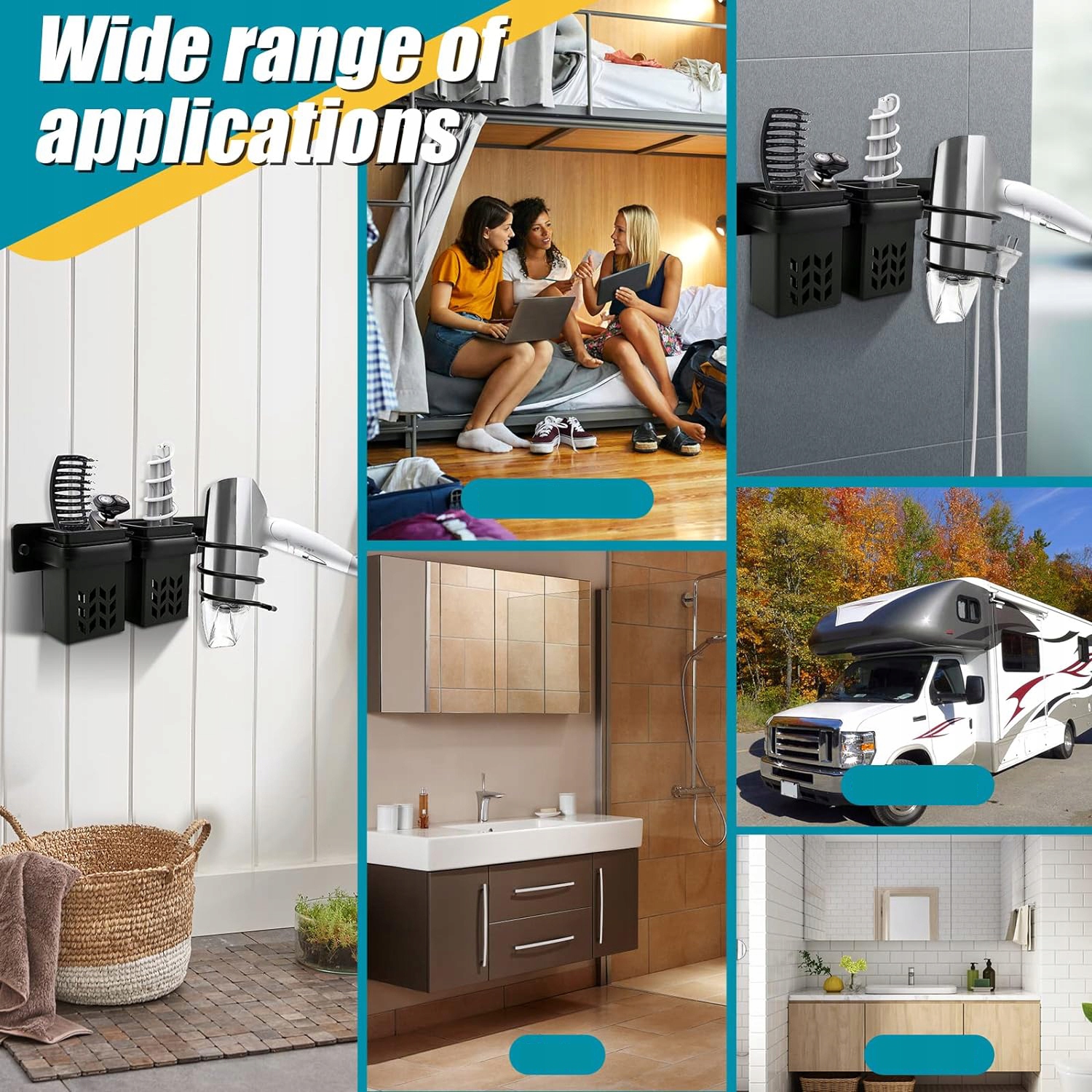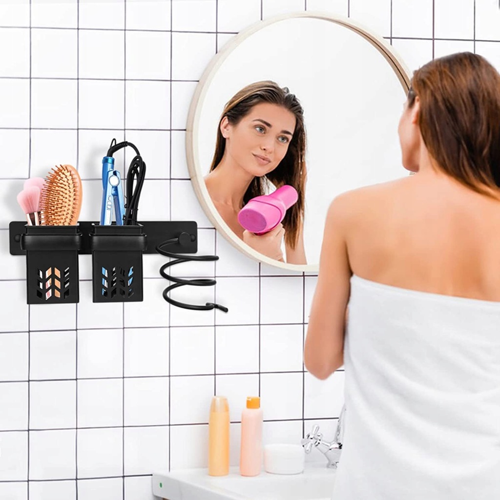 - Этот держатель для фена состоит из 1 держателя для фена и 2 съемных лотков для хранения. В этом настенном держателе для фена вы можете хранить практически все свои инструменты для укладки волос, такие как фены, выпрямители, щипцы для завивки волос, щетки для волос, бритвы и т. д.