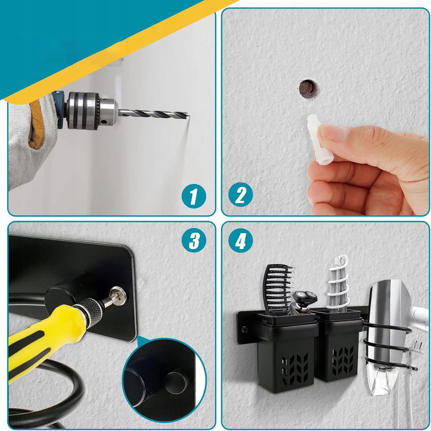 - Установка Способ 2: органайзер для фена поставляется в комплекте с винтами и крепится к стене с помощью перфорированных отверстий. это на стене. (Скрытая крышка с отверстиями для винтов для улучшения общего внешнего вида.)
