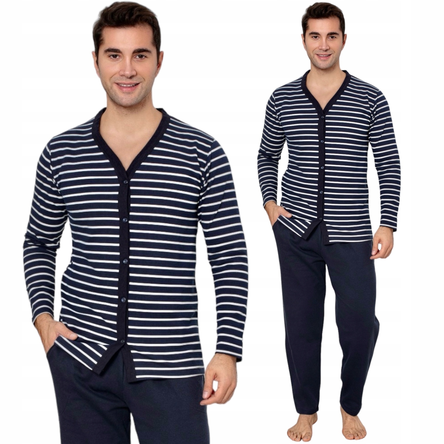 CIEPŁA GRUBA PIŻAMA MĘSKA DŁUGI RĘKAW DŁUGIE SPODNIE CAŁA ROZPINANA