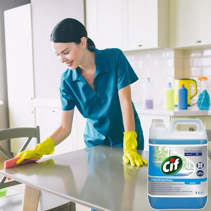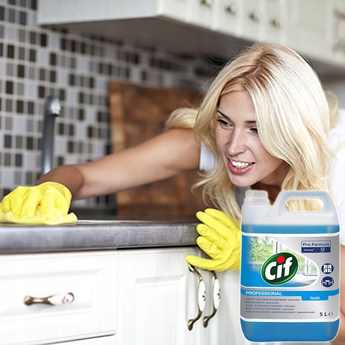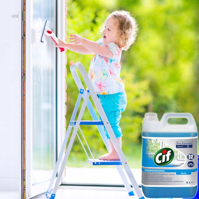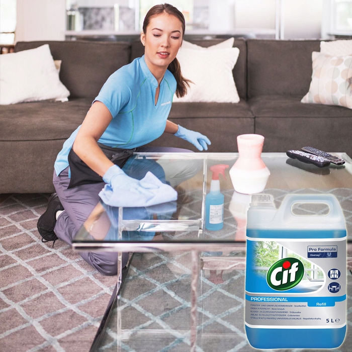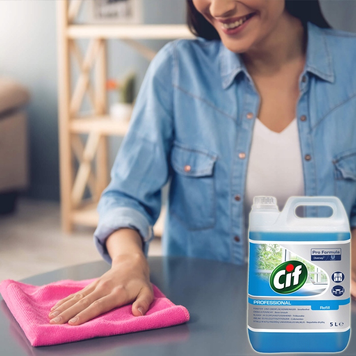 - Распылите Cif Professional Window & Multi Surface Cleaner непосредственно на ткань. а затем протрите поверхность.