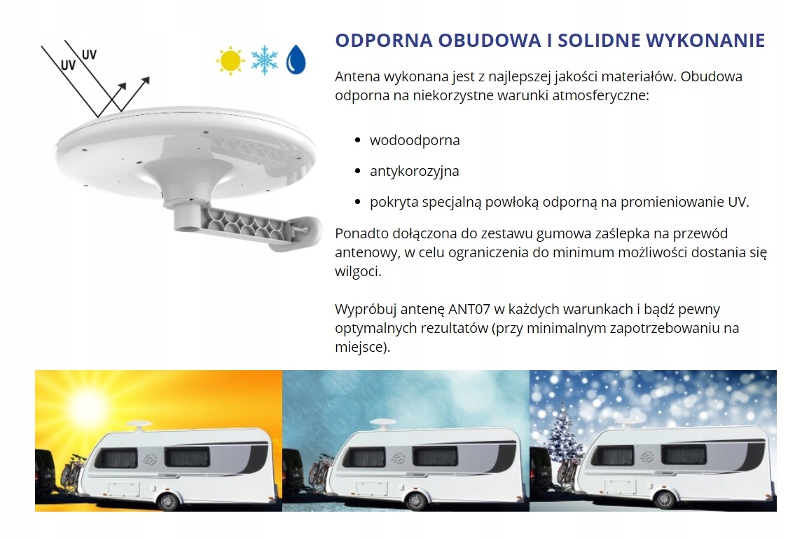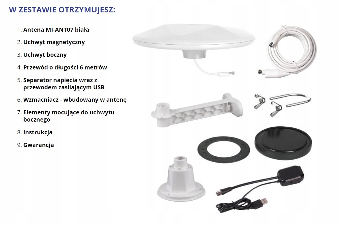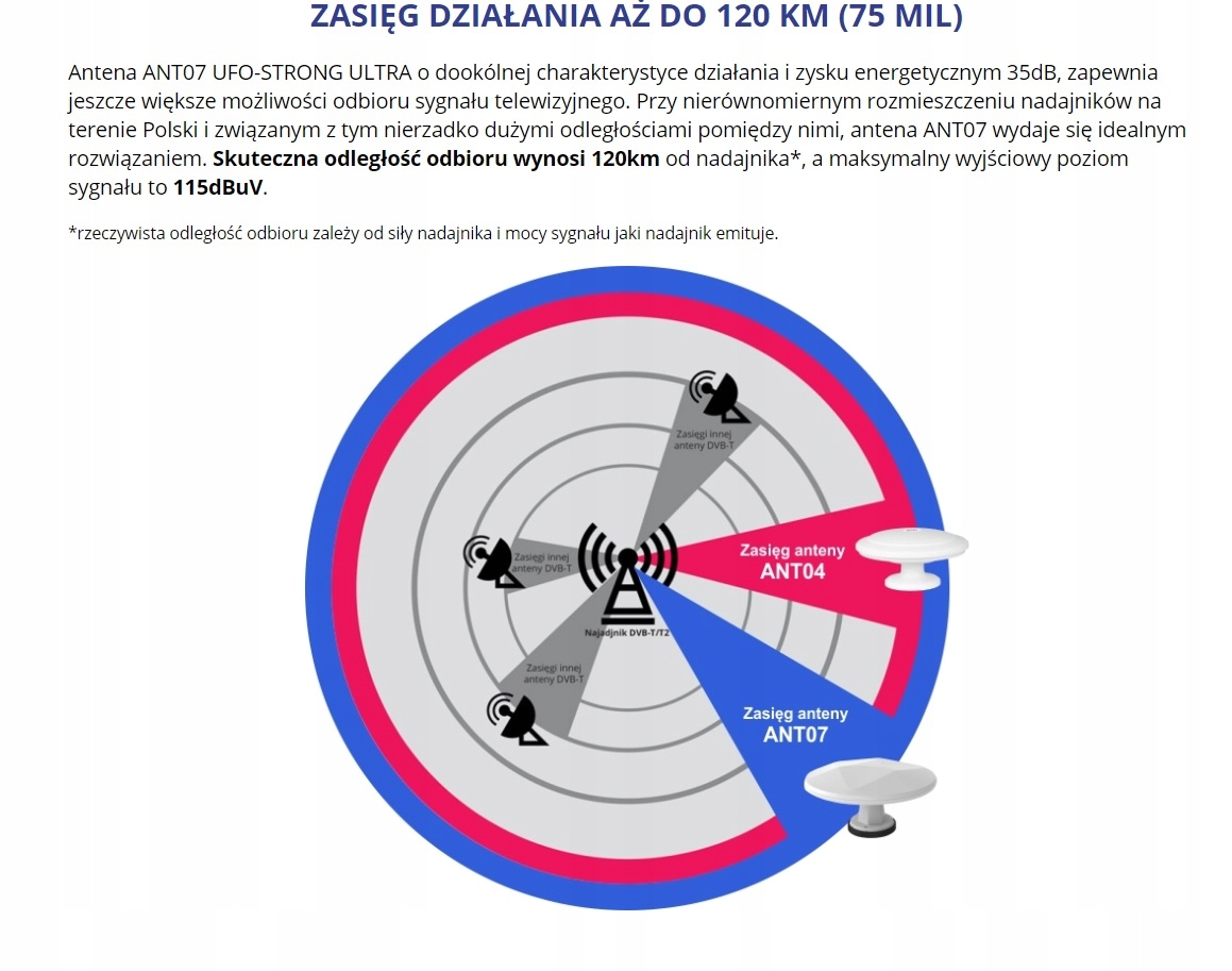 Антенна ANT07 UFO STRONG ULTRA, как и все антенны Mistral Polska, адаптирована для приема сигналов DVB-T (H.264) и DVB-T2 (H.265), то есть новейшей кодировки, которая будет доступна в Польше. с 2022 года.: