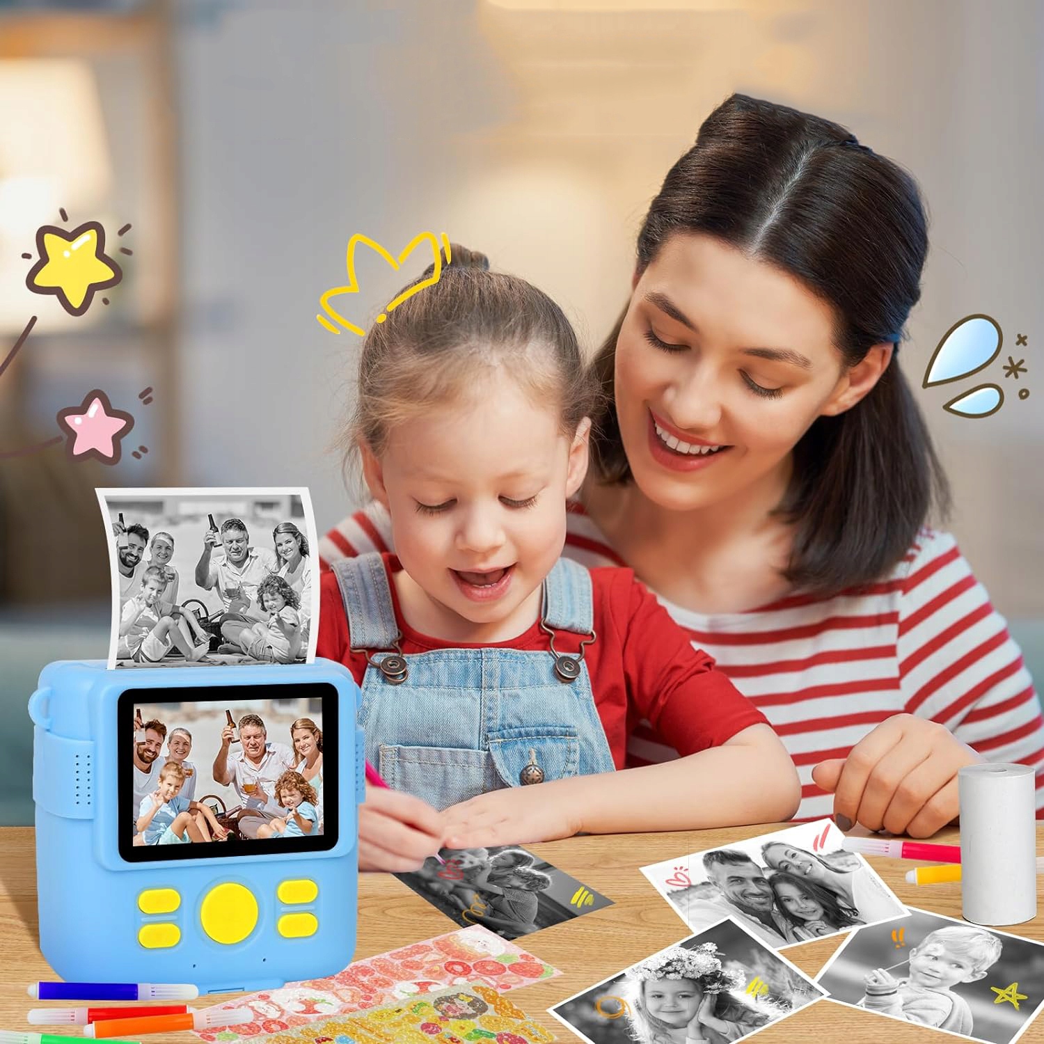 Камера моментальной печати для детей подойдет детям в возрасте от 3 до 12 лет и идеально подходит в качестве подарка на день рождения, Рождество и День защиты детей для мальчиков и девочек. Дети могут использовать его, чтобы делать селфи, записывать видеоблоги, записывать каждый момент жизни.