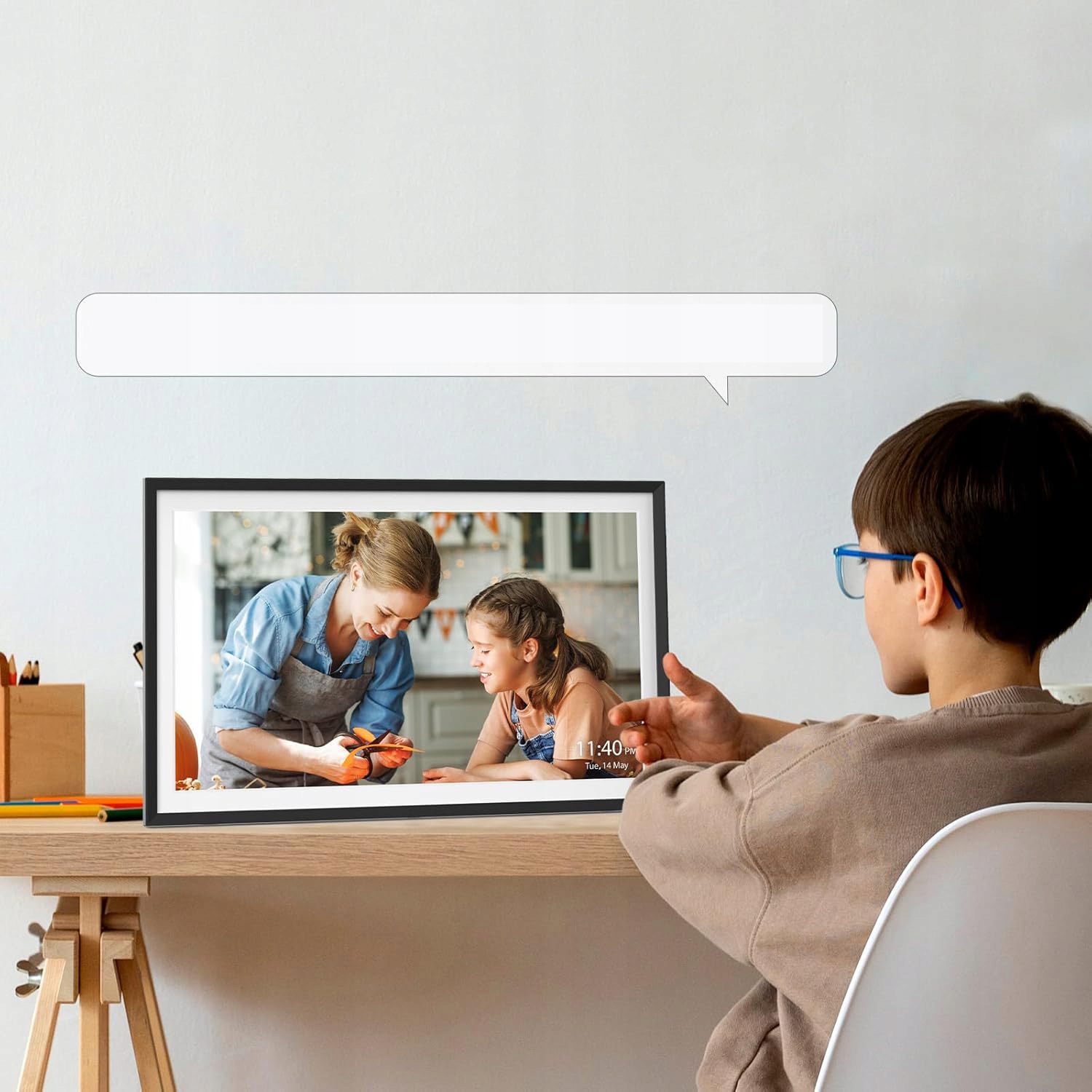 📱 Подключитесь к сети Wi-Fi с помощью приложения Frameo (доступно для устройств Android и iOS), и через несколько минут вы сможете добавлять фотографии или видео, а также добавлять подписи к своим фотографиям.