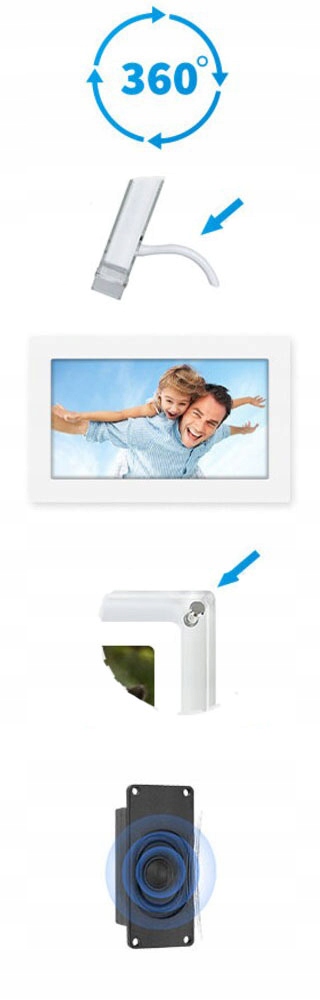 ✏️Функциональность: рамку можно повесить на стену или разместить на столе/любой плоской поверхности в вертикальном или горизонтальном положении, это возможно благодаря прикручивающейся опоре и возможности поворота фотографий на 360 градусов.