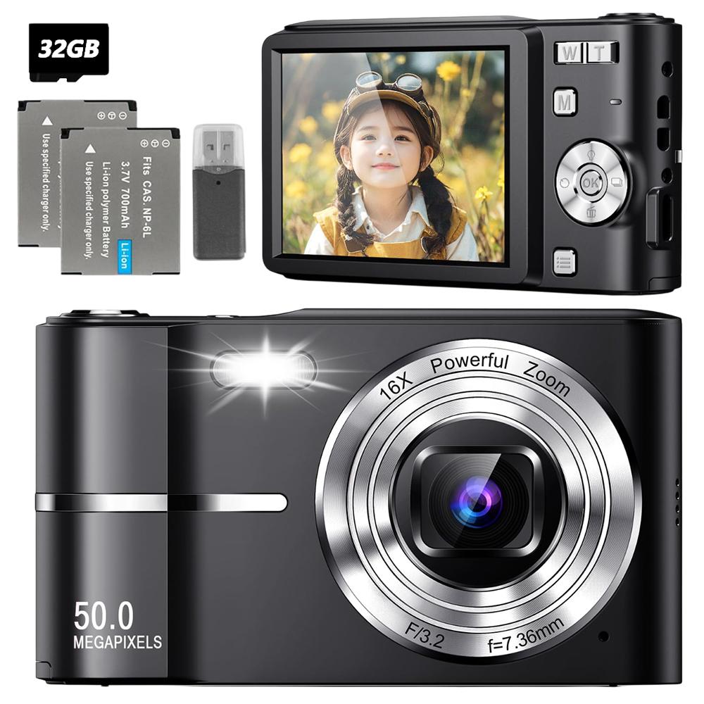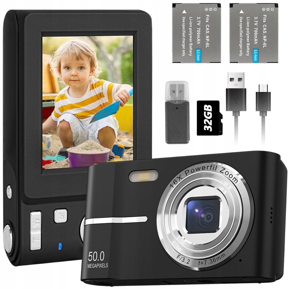 ЦИФРОВАЯ КАМЕРА 1080P 50MP 16X ЦИФРОВОЙ ЗУМ 2,8-ДЮЙМОВЫЙ IPS ЭКРАН ЧЕРНЫЙ ПОДАРОК