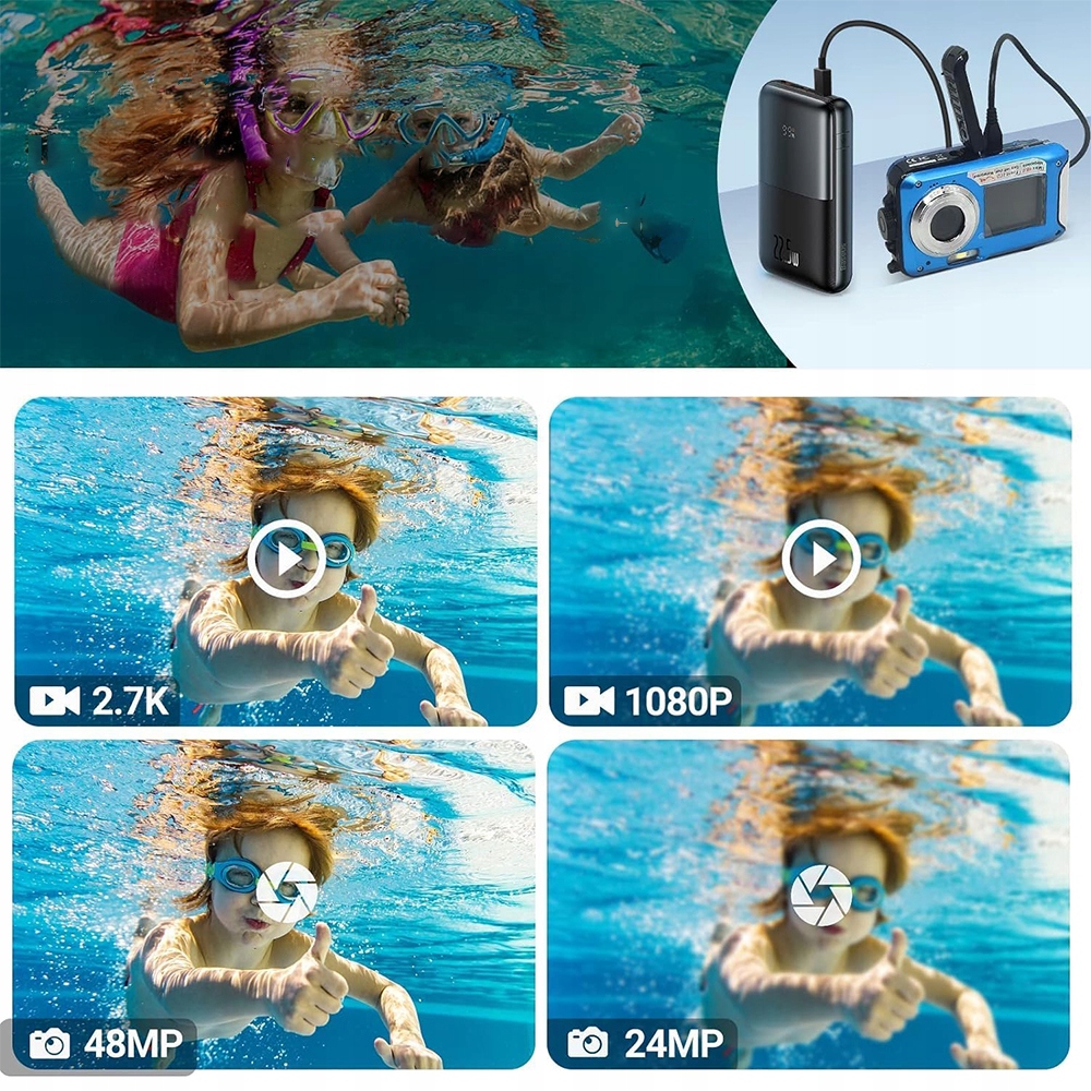 📸 💦【 камера для дайвинга с 11 -футовой трубкой】 Эта водонепроницаемая камера позволяет вам погрузиться в подводной мир на глубину до 3,5 метров (11 футов) без необходимости водонепроницаемого корпуса. Его также можно использовать под водой в течение 1 часа. Погрузитесь глубже, оставайтесь дольше - это идеальное решение для записи ваших любимых водных видов спорта, таких как плавание, серфинг, дайвинг с трубкой и многое другое. Поддерживает более 70 минут записи. Батарейный отсек водонепроницаемый и герметичный