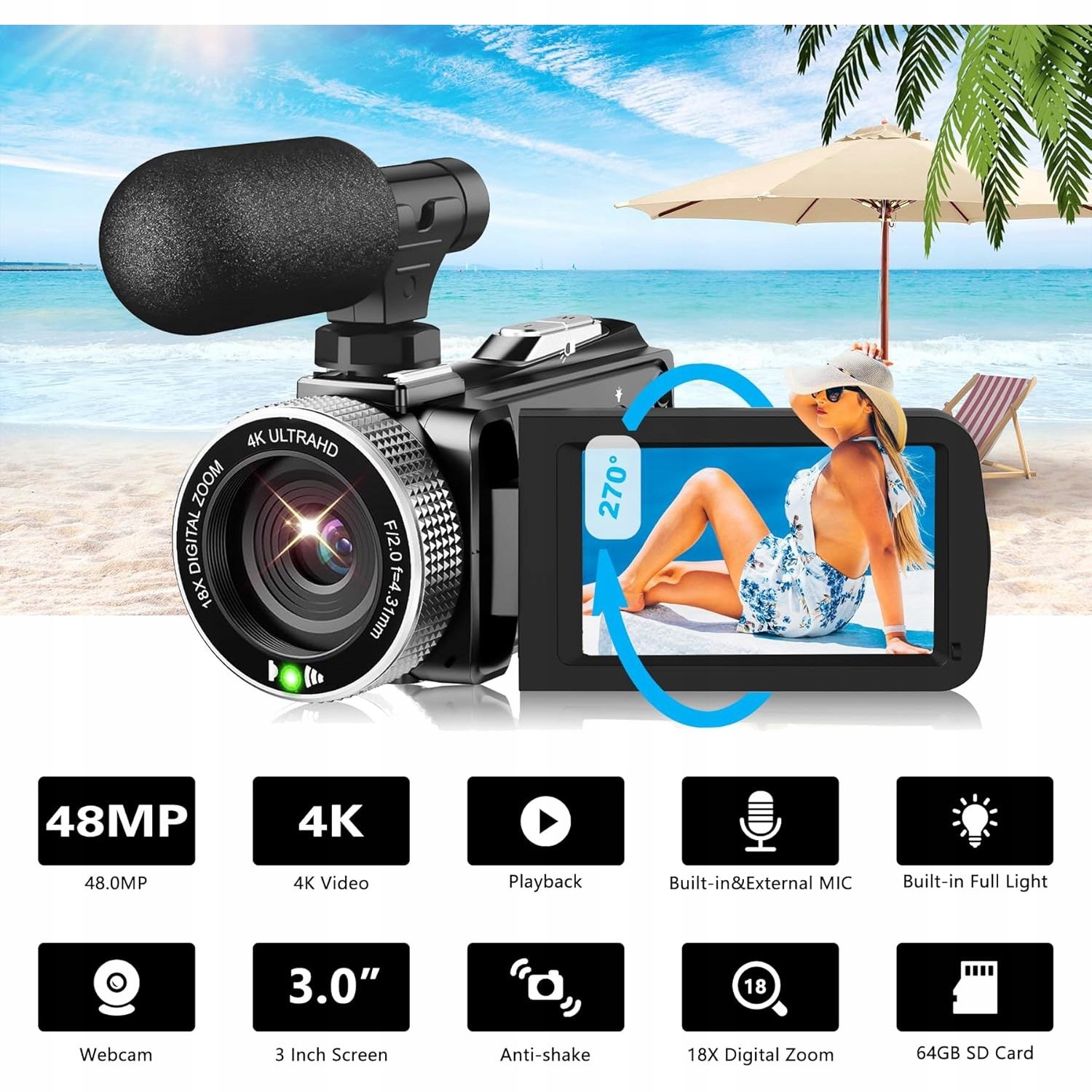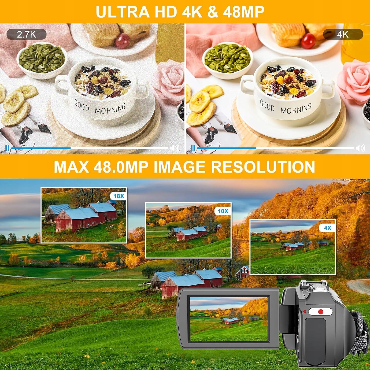 Узнайте новый уровень фильмов и фотографий благодаря этой цифровой видеокамере 4K, предназначенной для людей, которые ценят профессиональное качество и легкое обслуживание. Независимо от того, увековечиваете ли вы ценные моменты, создаете контент для социальных сетей или трансляции в прямом эфире, эта 4K -камера обеспечивает исключительную производительность благодаря 48 -мегапорочному конвертеру изображений и записи видео в высоком разрешении 4K с скоростью 60 кадров в секунду. 18-кратное цифровое зум позволяет четко сосредоточиться на отдаленных объектах, а электронная стабилизация изображения гарантирует плавные и стабильные записи.
