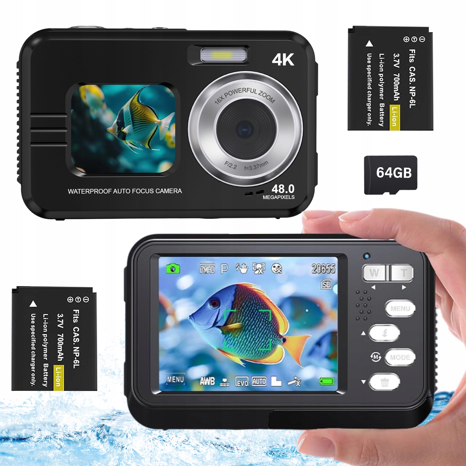 📸 -Продукт 4K -камера и 64 ГБ карты памяти: h1> - Наша водонепроницаемая цифровая камера имеет 48 миллионов пикселей, что позволяет вам делать высококачественные фотографии с богатыми деталями.