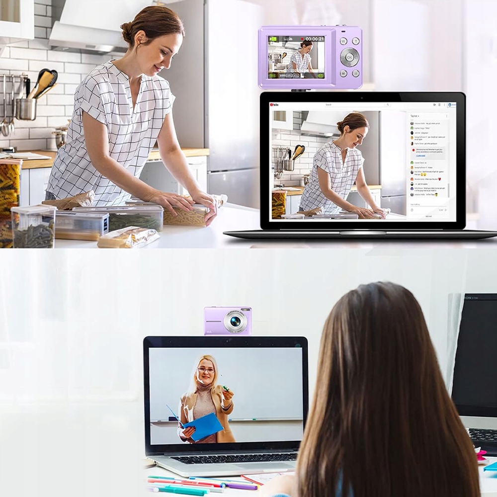 - 💜ten Камера может использоваться в качестве веб -камеры. Сначала выключите цифровую камеру, подключите камеру с помощью USB -кабеля, нажмите кнопку питания и кнопку затвора, чтобы перейти в режим веб -камеры, а затем вы можете создать видео подключение. Вы также можете отправлять файлы с камеры на свой компьютер, чтобы поделиться фотографиями и видео на Facebook, YouTube и других социальных сетях. Фотографии и видео могут быть увеличены и уменьшены путем перемещения кнопки W/T. Встроенная наполняющая лампа помогает делать высококачественные фотографии в темноте. Внешний штатив позволяет подключить штатив для стабильной фотографии.