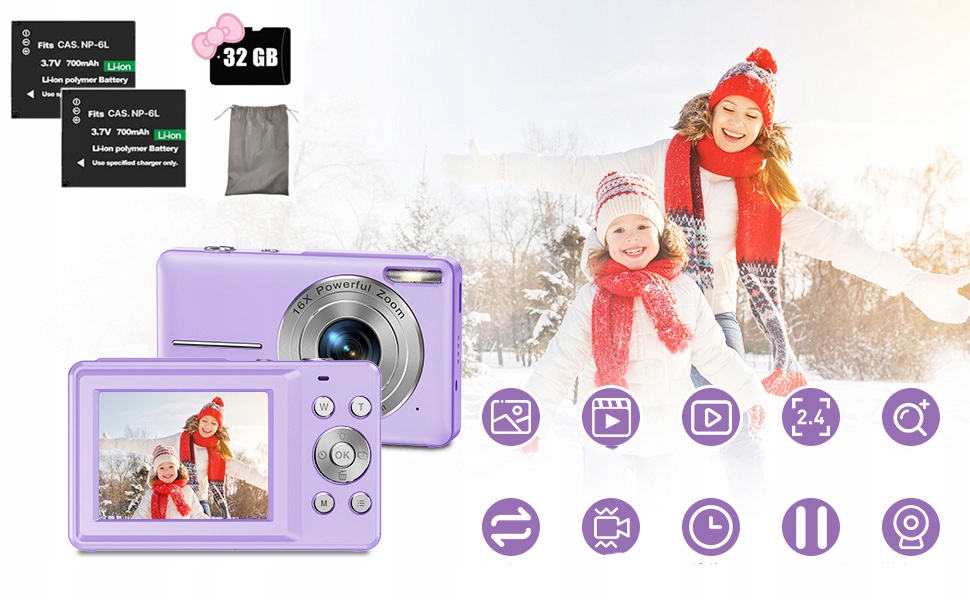 👧🧑【Цифровая камера специально для детей】Без сложных меню и запутанных настроек дети могут быстро освоить искусство фотографии с помощью цифровой камеры, запечатлеть самые красивые моменты и поделиться ими с другими. Эта компактная цифровая камера легкая и достаточно маленькая, чтобы поместиться в кармане, а функция автоматического отключения экономит еще больше энергии во время отпуска и походов.