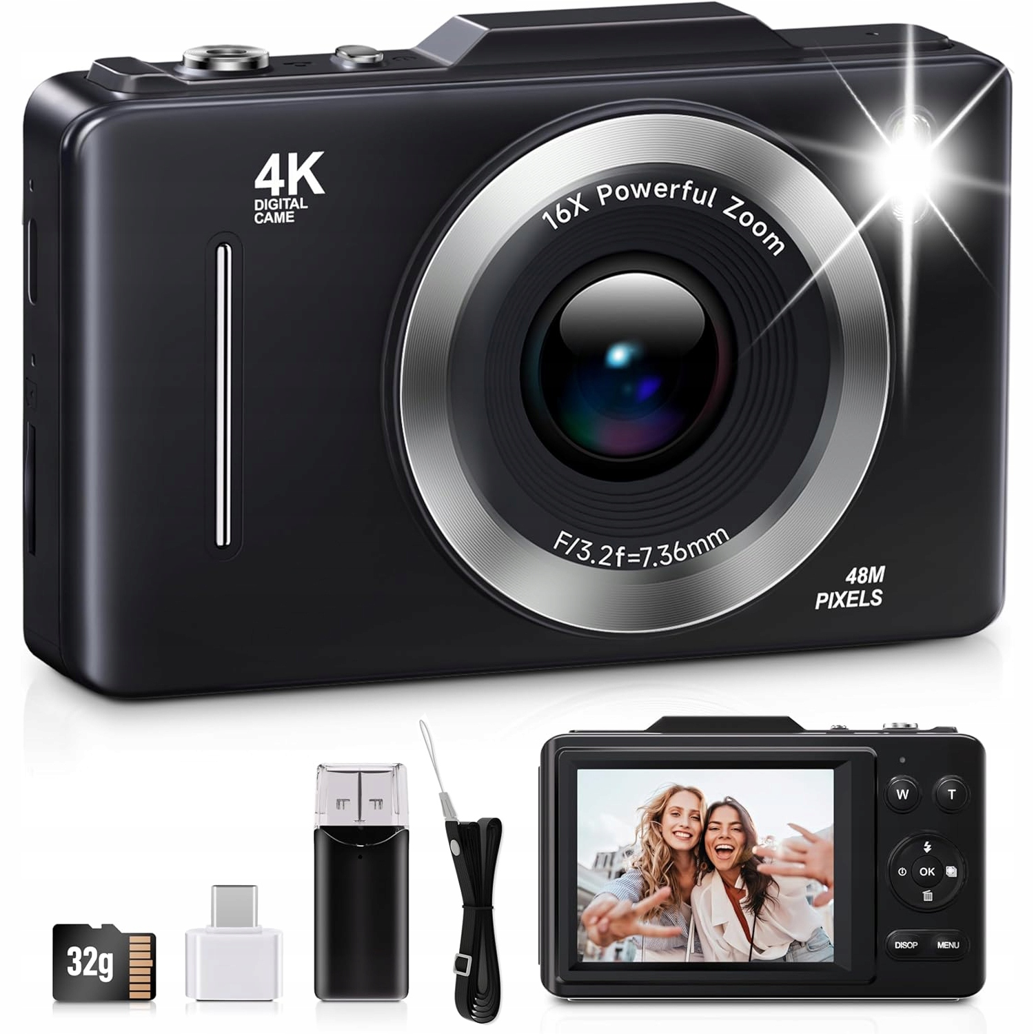 ЦИФРОВАЯ КАМЕРА МИНИ-КАМЕРА 48 Мп 16-кратный ЗУМ ДЛЯ ДОМАШНЕГО ИСПОЛЬЗОВАНИЯ С ДЕТЯМИ