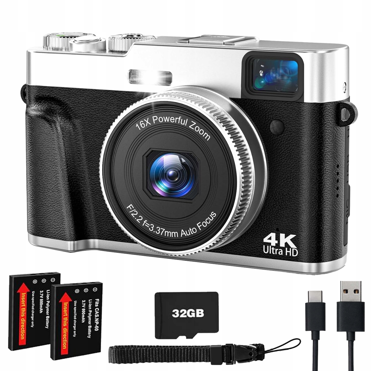 - Эта цифровая камера 4K оснащена картой памяти 32 ГБ, дополнительная покупка не требуется. < / ул>