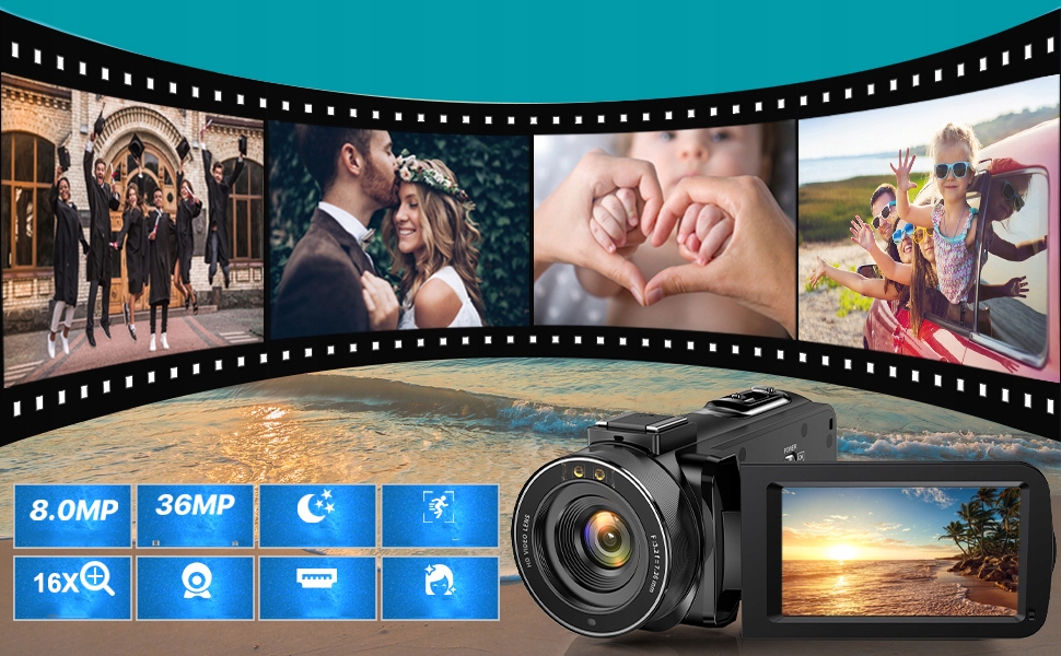 - Эта видеокамера поддерживает запись видео FHD 1080P и разрешение изображения 36 МП. 3,0-дюймовый IPS-экран поддерживает поворот на 270° и 16-кратный цифровой зум.
