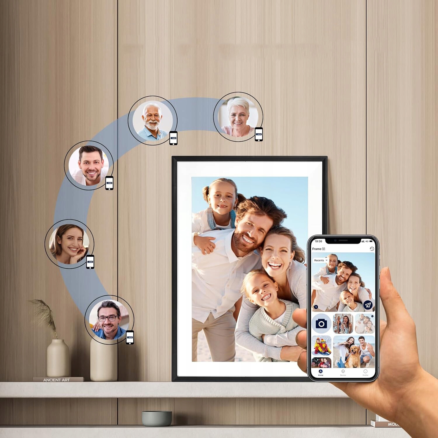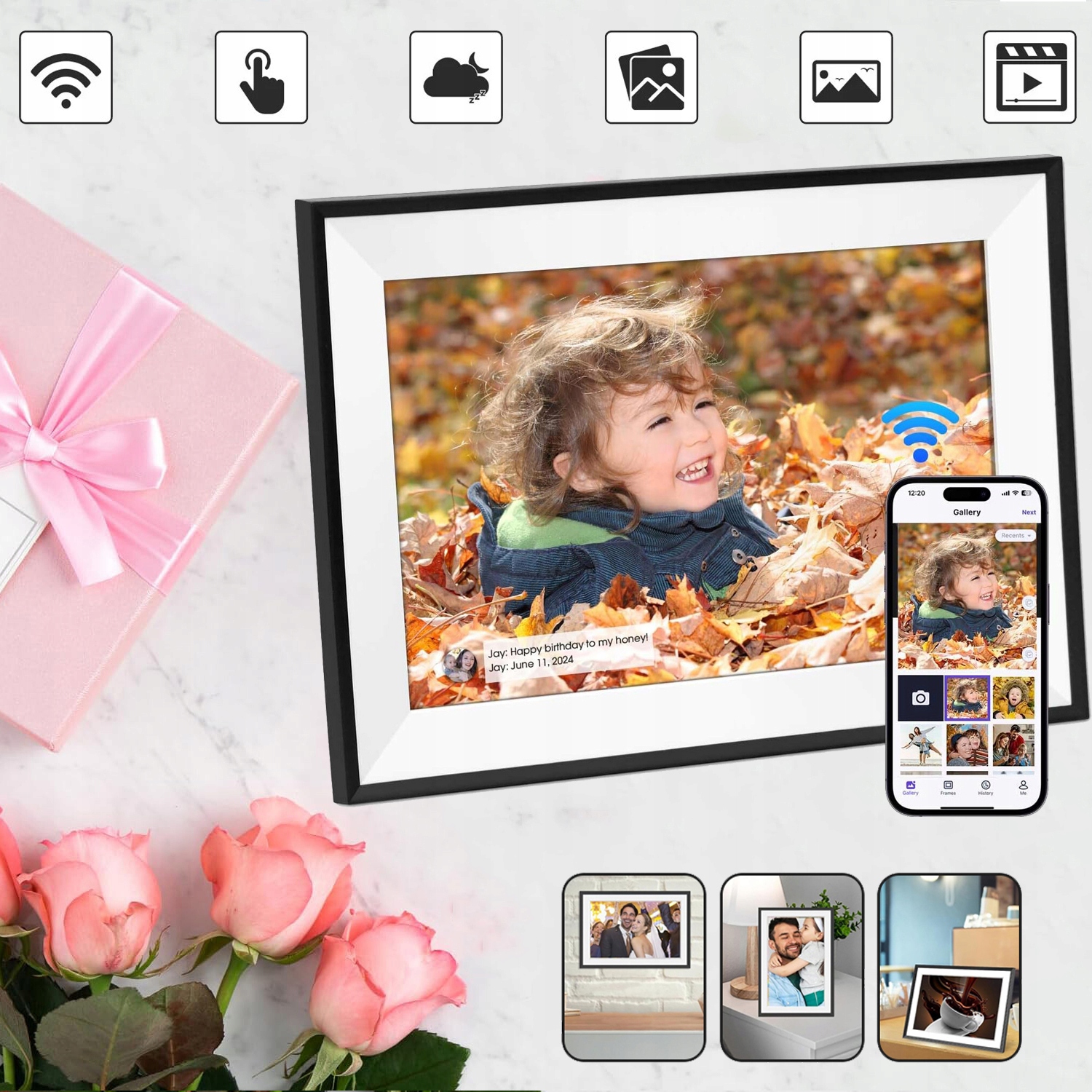 📷【 Поделитесь праздниками с вашей семьей】 Эта цифровая рамка для фотографий Wi-Fi использует преимущества немедленных воспоминаний об обмене, так что вы можете поделиться последними хорошими моментами со своими любимыми людьми, где бы вы ни захотите. Идеально подходит для Дня Матери, Дня отца, Дня Благодарения, Рождества, День рождения, Свадьбы.