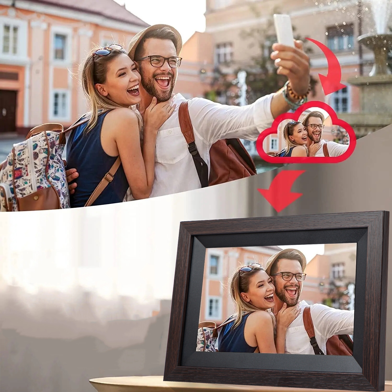 Цифровая рама 10 дюйма для фотографий скорость-Speeder Music WiFi Frameo Wooden Frameo