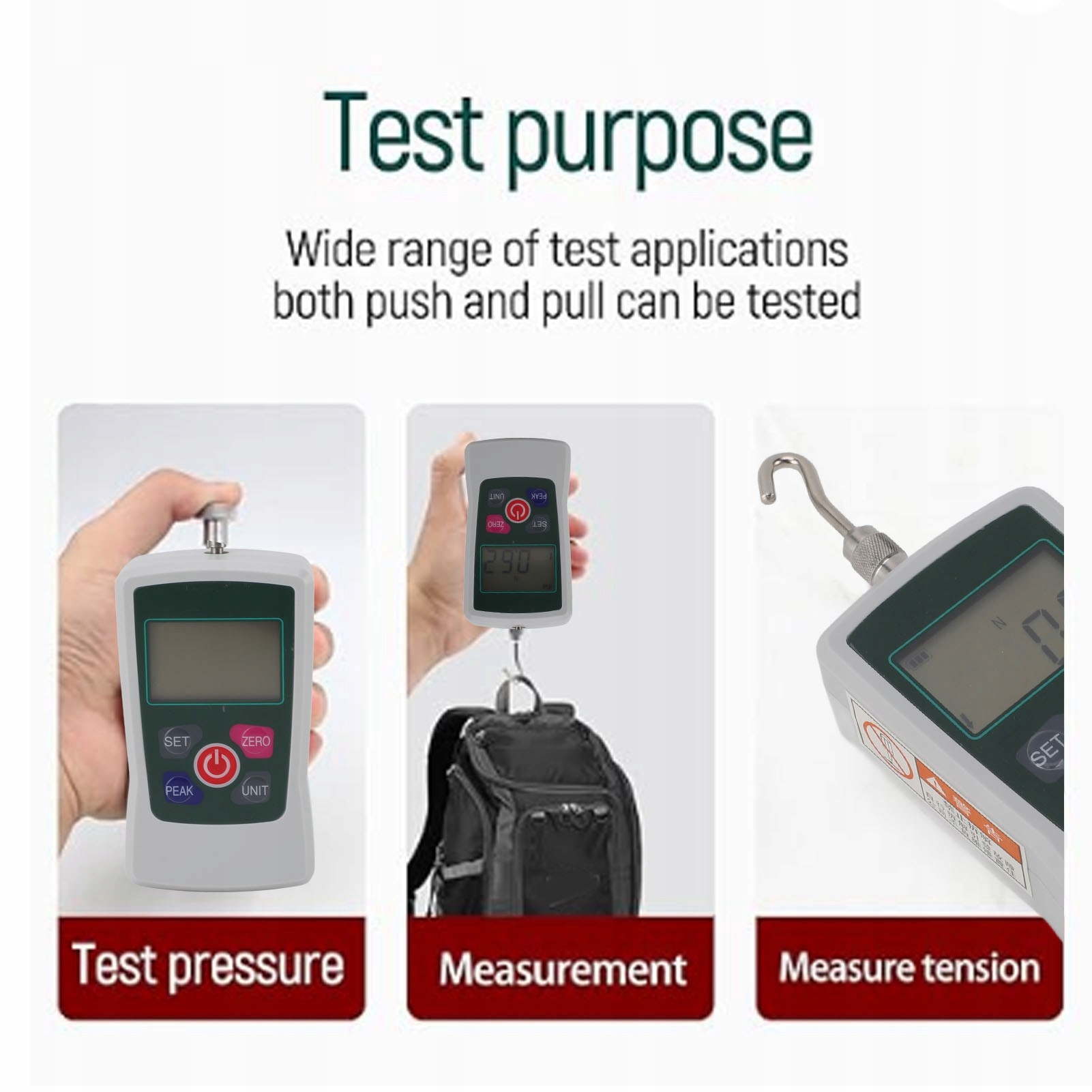2. Многофункциональный: цифровой показатель прочности поддерживает широкий ассортимент тестовых сценариев и может использоваться во многих областях, таких как механики для разработки продукта и качественный контроль
