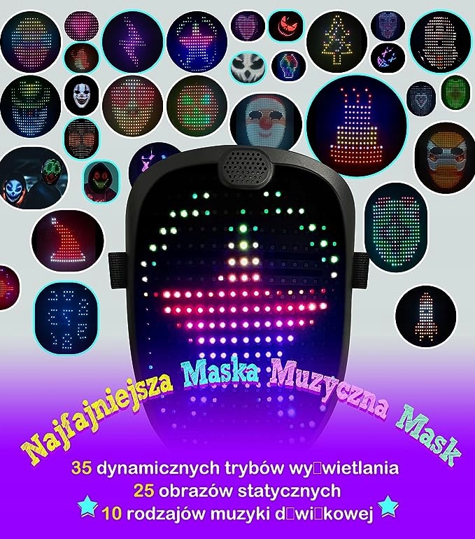 СВІТЛОДІОДНА ЦИФРОВА МАСКА МУЗИКА 60 ДИЗАЙНІВ МУЗИЧНА МАСКА ПАРТІЙНА СУКНЯ