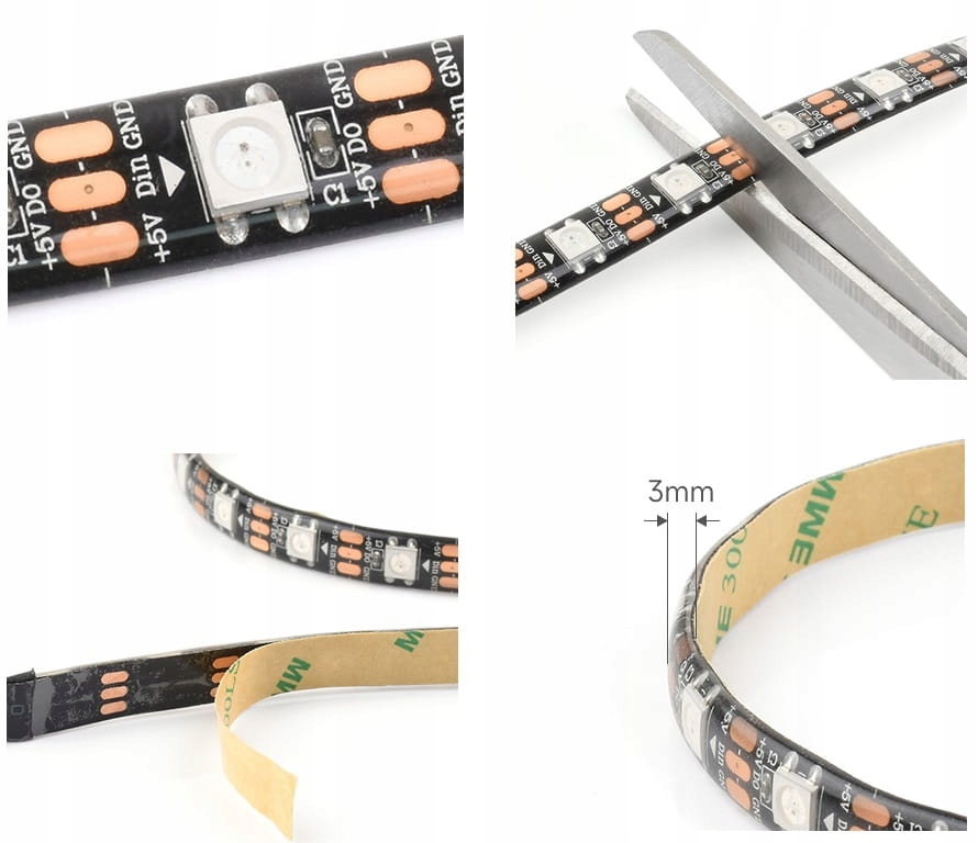 Светодиодная лента RGB 5050 — идеальное решение для людей, которые хотят создать неповторимую атмосферу в своем доме. дом или офис, ночной клуб или любое другое место. Благодаря этому каждая комната приобретет неповторимый характер и современный вид. Светодиодная лента имеет ширину печатной платы 10 мм и питается от напряжения 5 В, что позволяет добиться экономии электроэнергии и низкого потребления. Содержит 60 светодиодов на метр и угол освещения 120 градусов, что гарантирует равномерное распределение света. Длина ленты составляет 1 метр на рулон, а класс защиты IP65 обеспечивает постоянную защиту от пыли и воды. Светодиодная лента WS2812 имеет регулируемую шкалу 256 и соединение с помощью 3-контактного разъема SM + 2-контактного источника питания. Метод установки с помощью двухсторонней ленты 3M на задней стороне обеспечивает простоту установки. и определение состоит из красного цвета (5 В положительный), белого (5 В отрицательный) и зеленого (сигнал ДАННЫЕ).