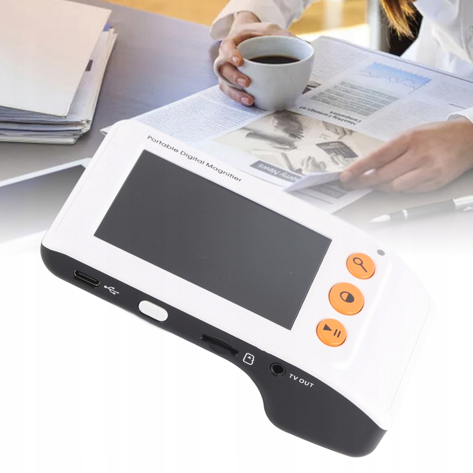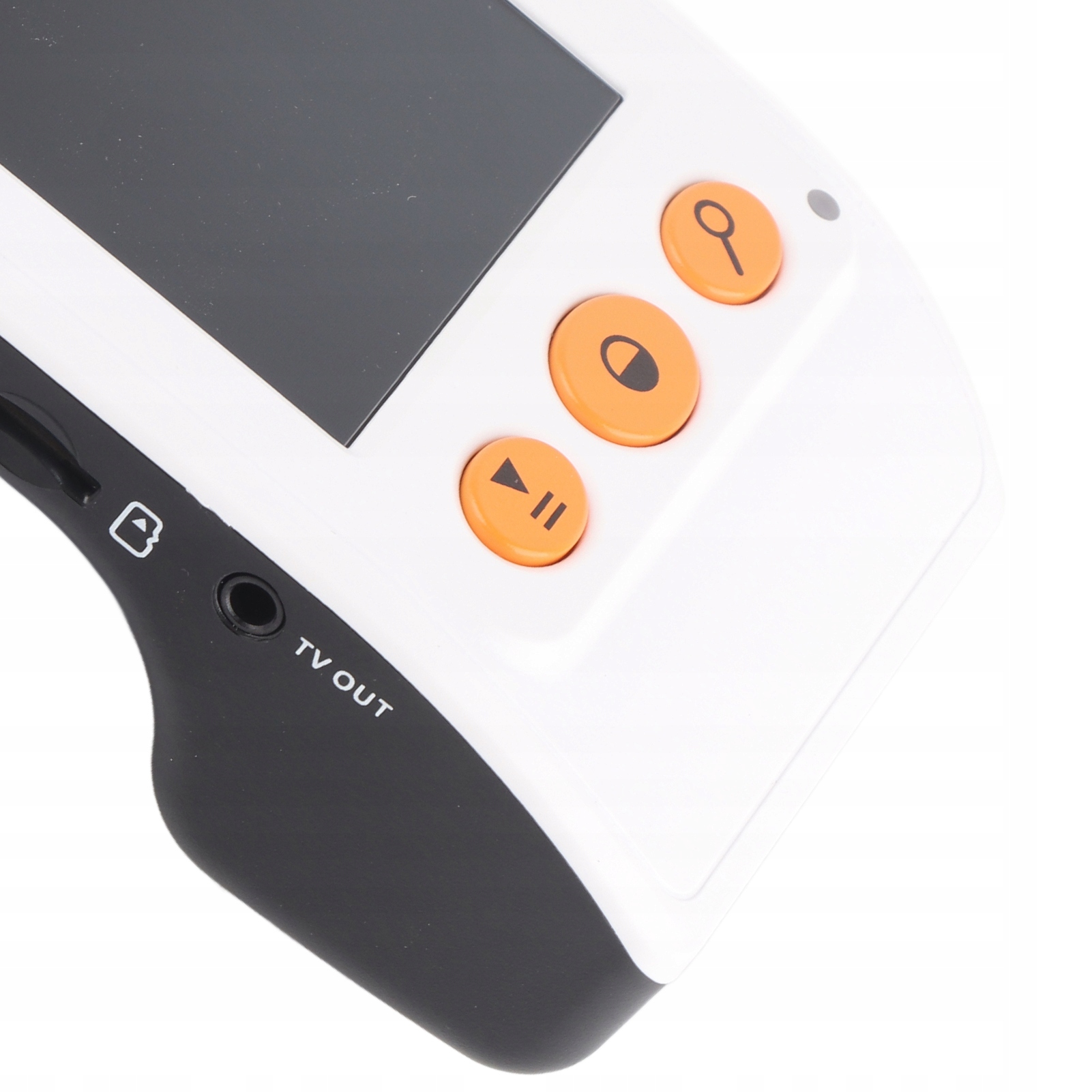 3. Многофункциональность: Аудио- и видеовыход. Подключите средство для чтения к телевизору с помощью телевизионного кабеля, чтобы просматривать изображение с большим увеличением, чем экран с увеличительным стеклом. Увеличение от 2x до 25x: экран с диагональю 3,5 дюйма поддерживает 2x, 8x, 16x, 25x увеличение текста.