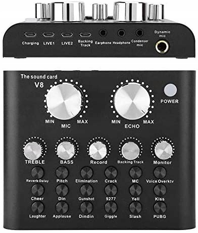 Цифровая звуковая карта V8 с преобразованием голоса, живая звуковая карта для мобильного компьютера, черный металлический корпус