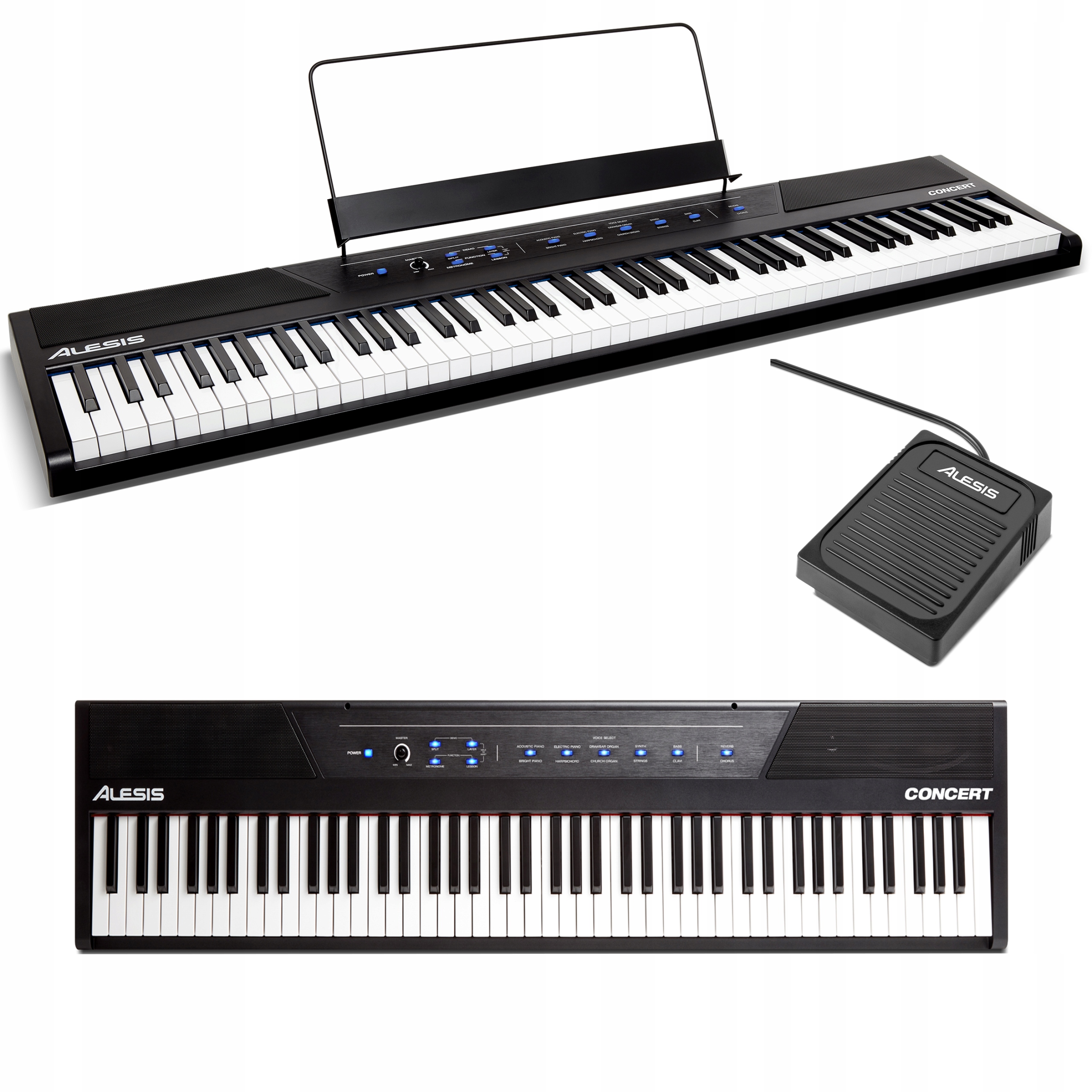 Alessis Concert -это полностью функциональное цифровое пианино с 88 полными, полузащитыми клавишами с регулируемым ответом на прикосновение. Синтезатор, струны, бас и клави. Они также могут быть назначены только левой или правой руке в разделенном режиме. Вы даже можете добавить регулируемую реверберацию и припев, чтобы регулировать свой звук еще больше. 88