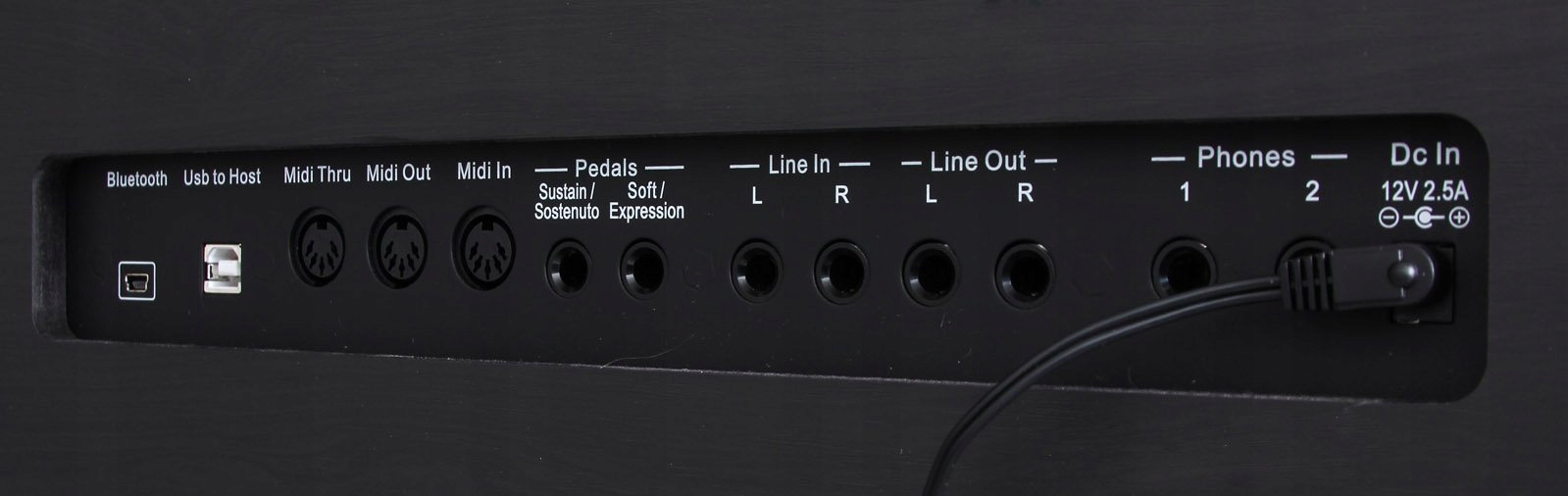 - Разъемы: Bluetooth. , выходы L/R, входы L/R, разъем USB to Host, Midi In/Out/Thru, разъемы для педалей 1 и 2, розетка 12 В.