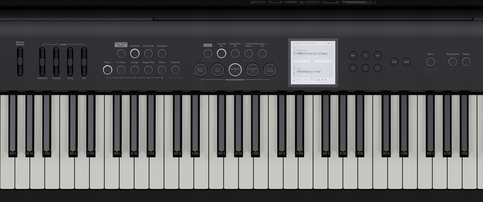 FP-E50 также оснащен расширяемой клавишей. Звуковой движок ZEN-Core — это тот же усовершенствованный звуковой генератор, который используется в профессиональных синтезаторах Roland, таких как JUPITER-X и FANTOM. Исследуйте исторические звуки синтезаторов Roland, звуки духовых и оркестровых инструментов, гитары и бас-гитары, звуки мира, барабаны и многое другое. Благодаря простому управлению вы можете свободно накладывать звуки фортепиано и ZEN-Core или назначать разные звуки для левой и правой руки.
