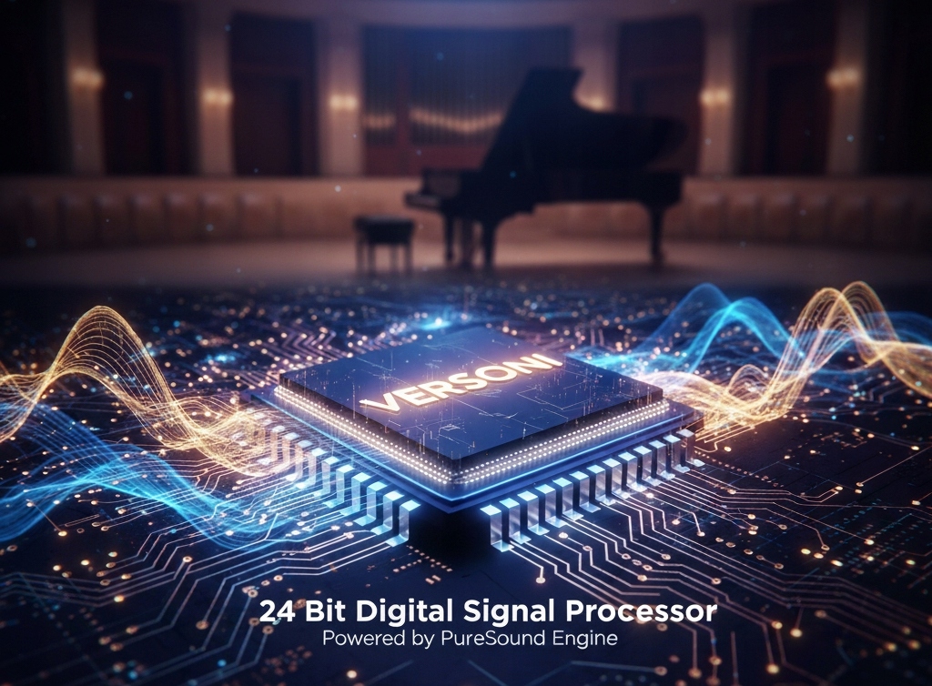 Сердцем фортепиано является современный аудиопроцессор премиум-класса DSP, оснащенный шестнадцатью 24-битными ядрами, что обеспечивает исключительно высокую эффективность вычислений и семплирования.