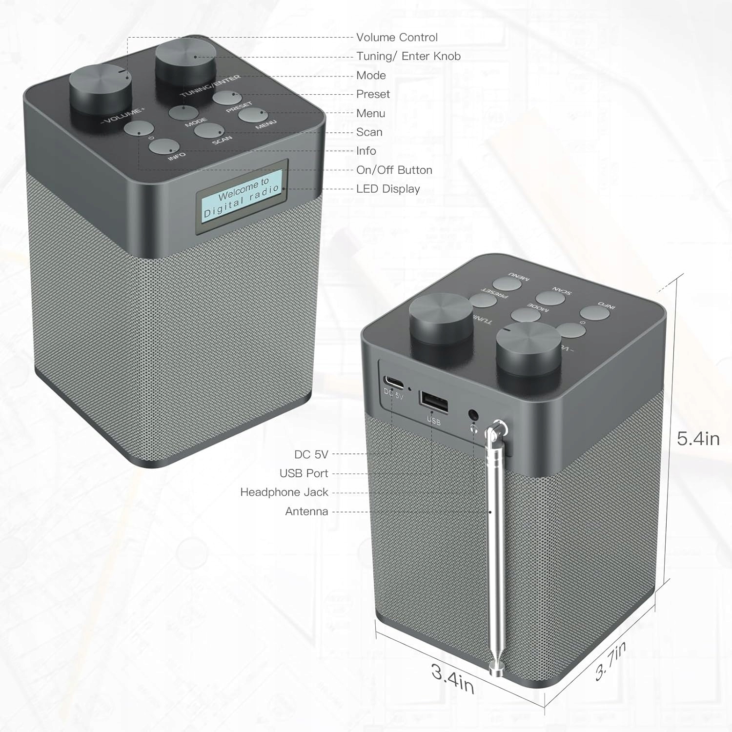 Элегантный внешний вид, портативный и компактный дизайн делают FM-радио DAB идеальным выбором для дома или в качестве подарка. Мы стремимся предоставить нашим клиентам максимально приятные впечатления от радио, поэтому мы всегда и постоянно разрабатываем улучшения, чтобы обеспечить исключительный звук и качество сборки.