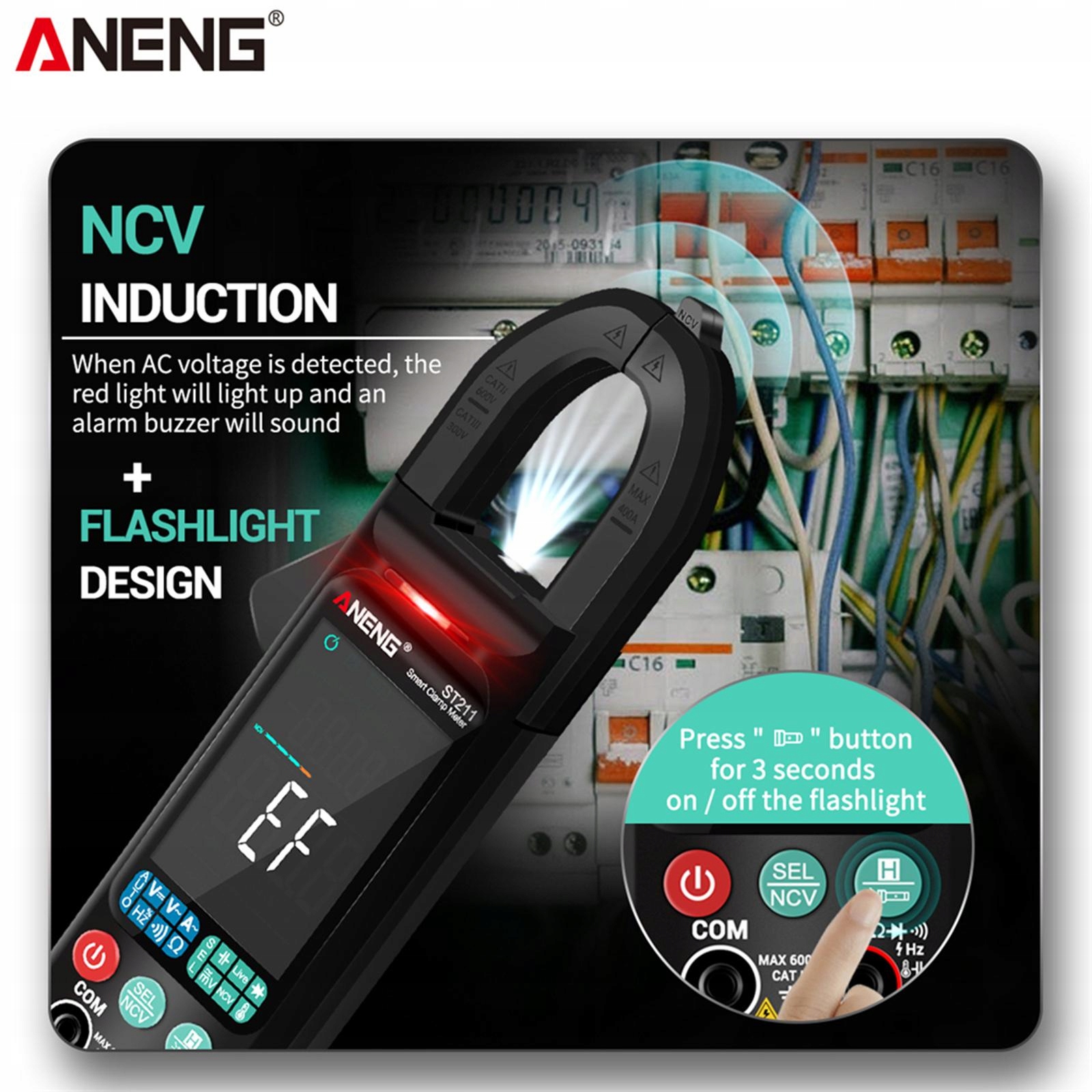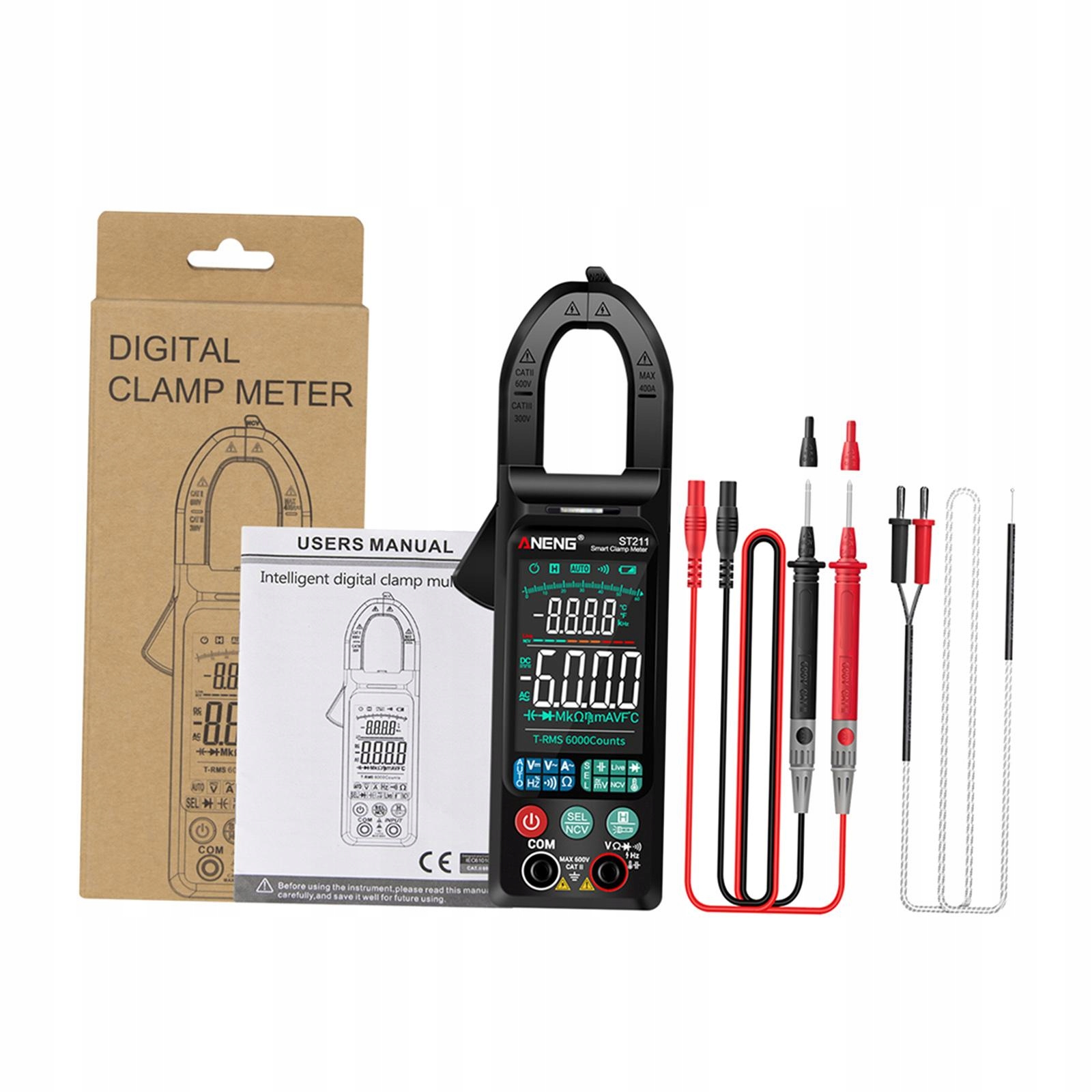 Цифровые клещи, 6 отсчетов TRMS с автоматическим определением диапазона напряжения переменного/постоянного тока, усилитель черного цвета