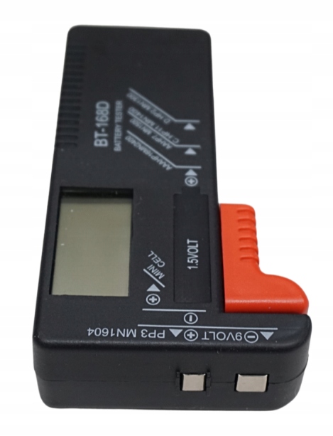 Потребление батареи измеряется путем прикосновения к полюсам + и - батареи/ аккумулятор с металлическими наконечниками тестера и считывание результатов измерений на четком ЖК-дисплее.