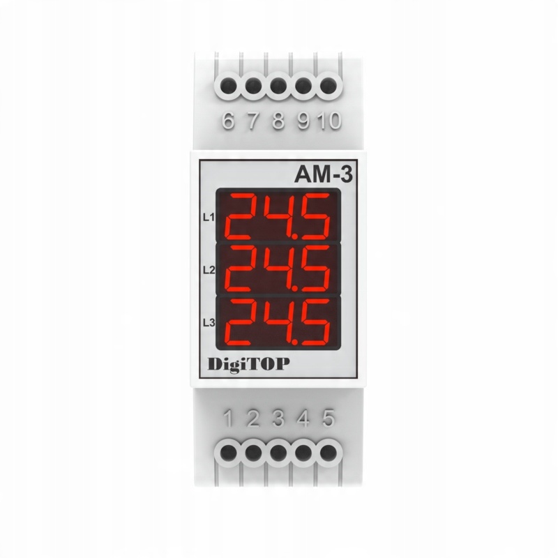 Амперметр цифровой АМ-3 предназначен для измерения переменного тока частотой 50(±1)Гц в трехфазной сети с отображением значений тока на цифровых светодиодных индикаторах. Ток измеряется с помощью внешних трансформаторов тока (входят в комплект поставки).