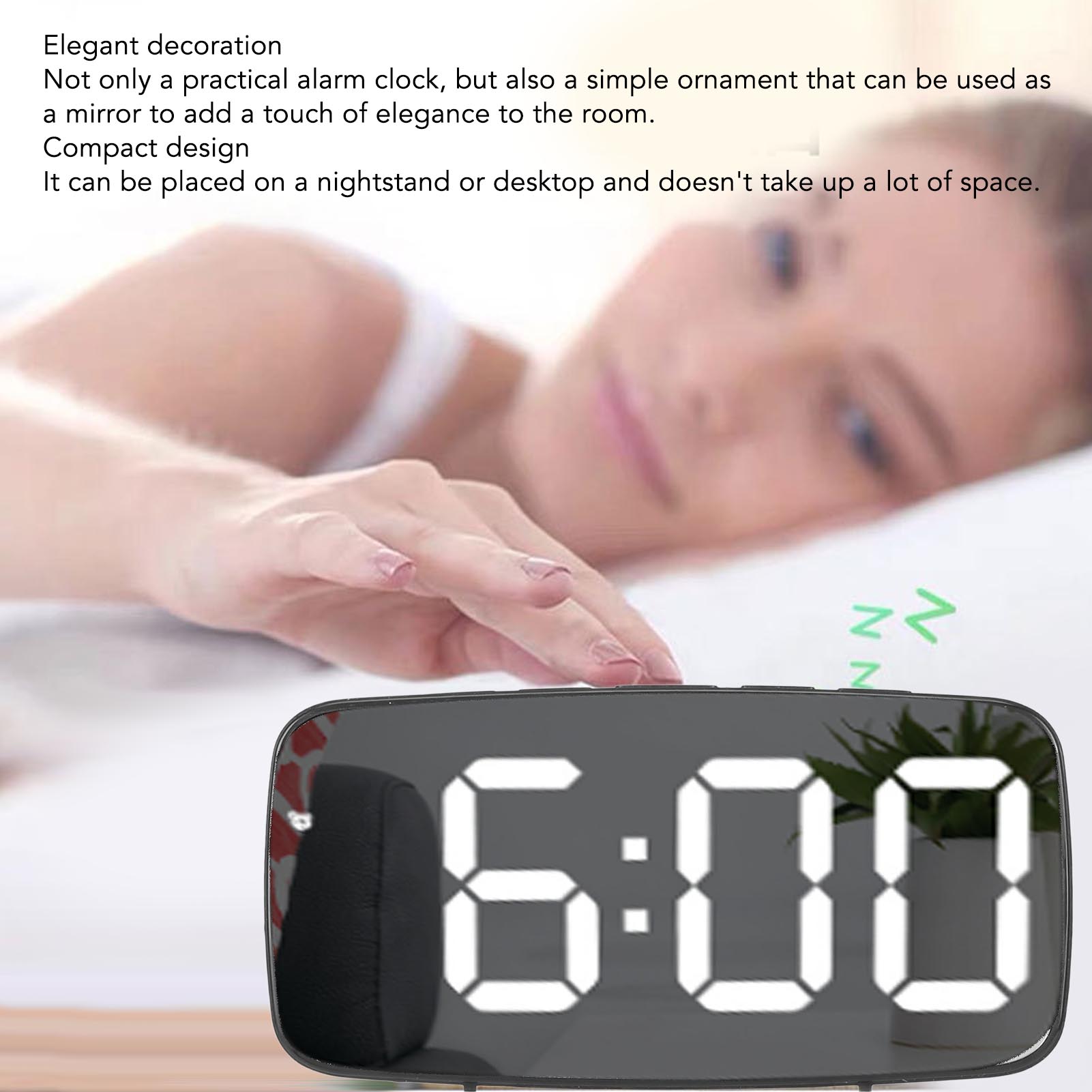 4. [Компактный дизайн]: компактный размер часов означает, что их можно разместить на прикроватной тумбочке или на столе, они занимают минимум места и легко вписываются в любую комнату, не нарушая общую эстетику.