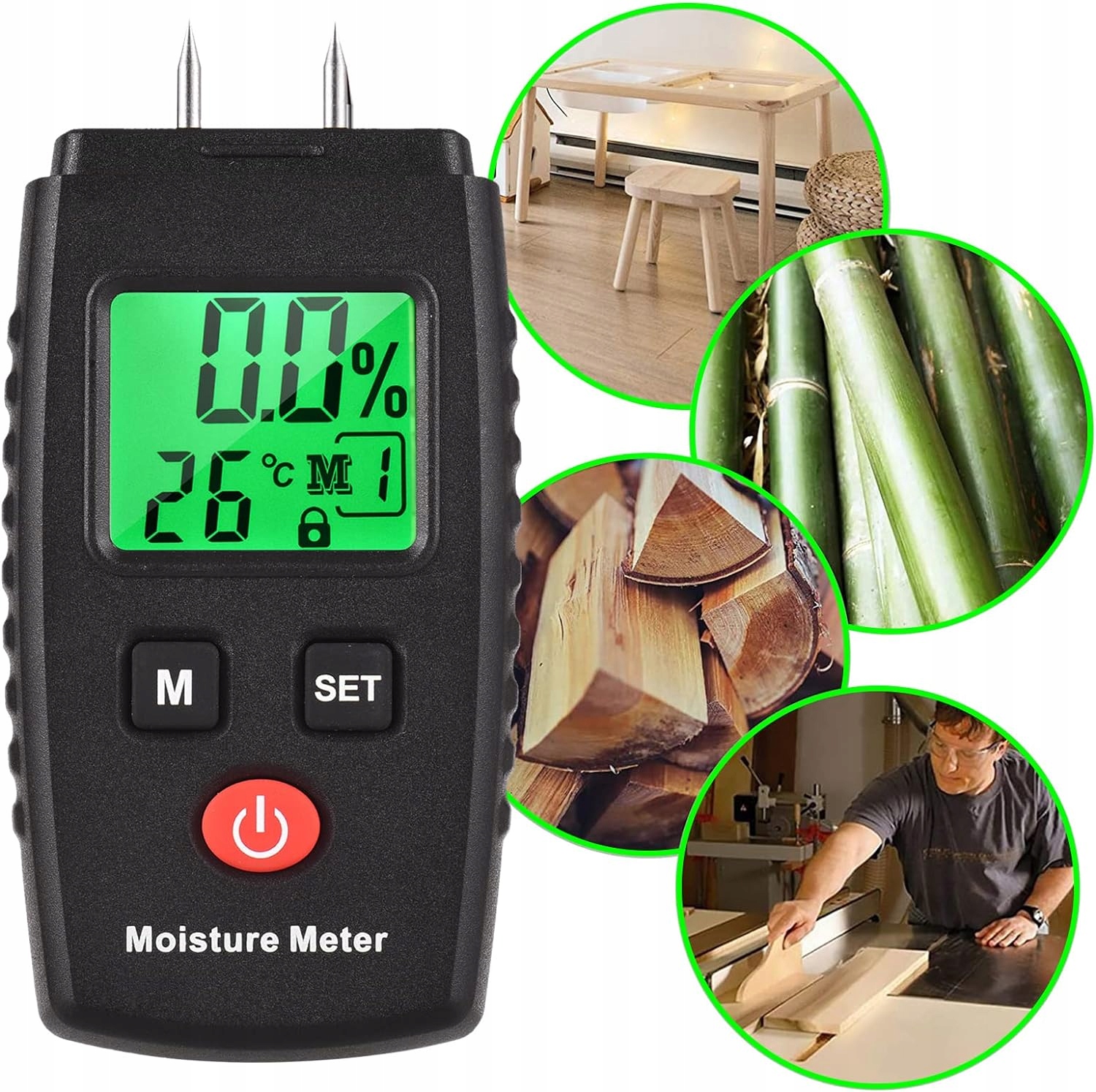 ⭐⭐⭐Для правильной обработки необходимо знать влажность древесины. Влажность зависит от степени гигроскопичности и водопоглощения древесины, контактирующей с ней. Эти параметры определяют свойства древесины, которые изменяются в зависимости от породы.Влагомеры древесины являются незаменимым оборудованием для профессионалов и любителей на таких рабочих местах, как: деревообрабатывающие предприятия, лесозаготовки, ремесленные мастерские, строительство.Этот гигрометр широко применяется для измерения влажности древесины. влажность всех пород древесины, деревянных элементов, бумажных изделий, трав и строительных материалов.🌳🌳🌳